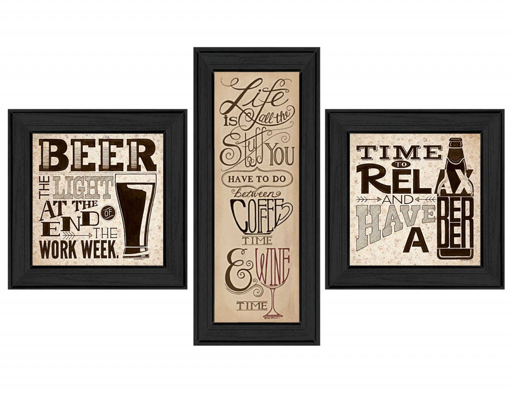 The set of three beer time black framed print wall art is the perfect decorative accessory for your home. This print is a visual artistic expression that allows you to decorate your space in style. Reproduced for you on paper, this hanging decorative accent will be a trendy and fashionable way to dress your walls. Hang on your wall to add some up to date fashion and decoration. Utilize this opportunity to create a focal point in the room with this fabulous wall decor option. 18-inch H x 39-inch W x 1.5-inch D