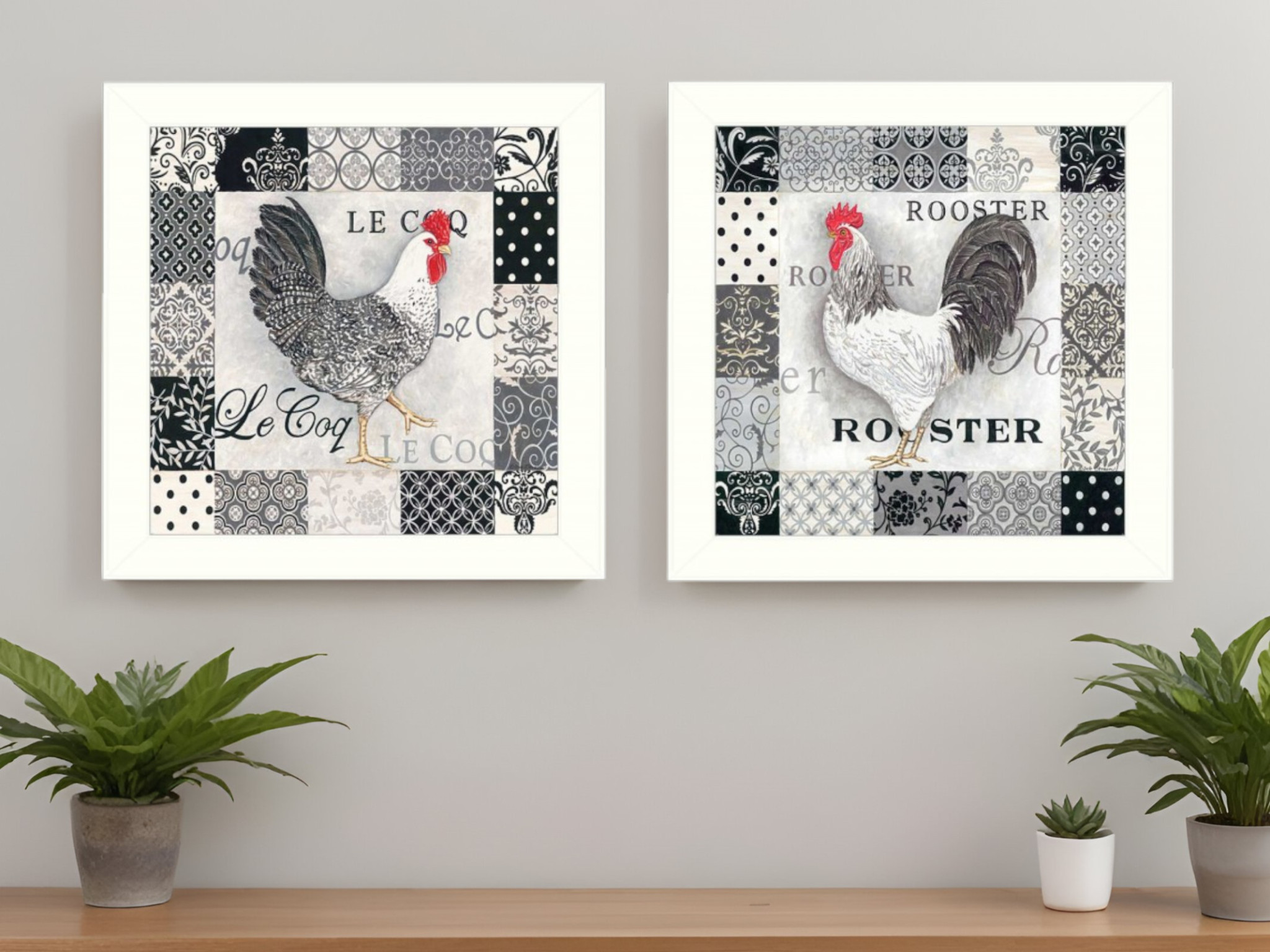 Unique and decorative, this set of two rooster white framed print wall art will leave a lasting impression. Update your walls with this farm animal decor. This print is a visual artistic expression that allows you to decorate your space in style. Reproduced for you on paper, this hanging decorative accent will be a trendy and fashionable way to dress your walls. Adding this hanging wall art to your space to make your room feel more finished and attractive. Instantly liven up your space with this art that brings color and dimension to your walls. 14-inch H x 28-inch W x 1.5-inch D