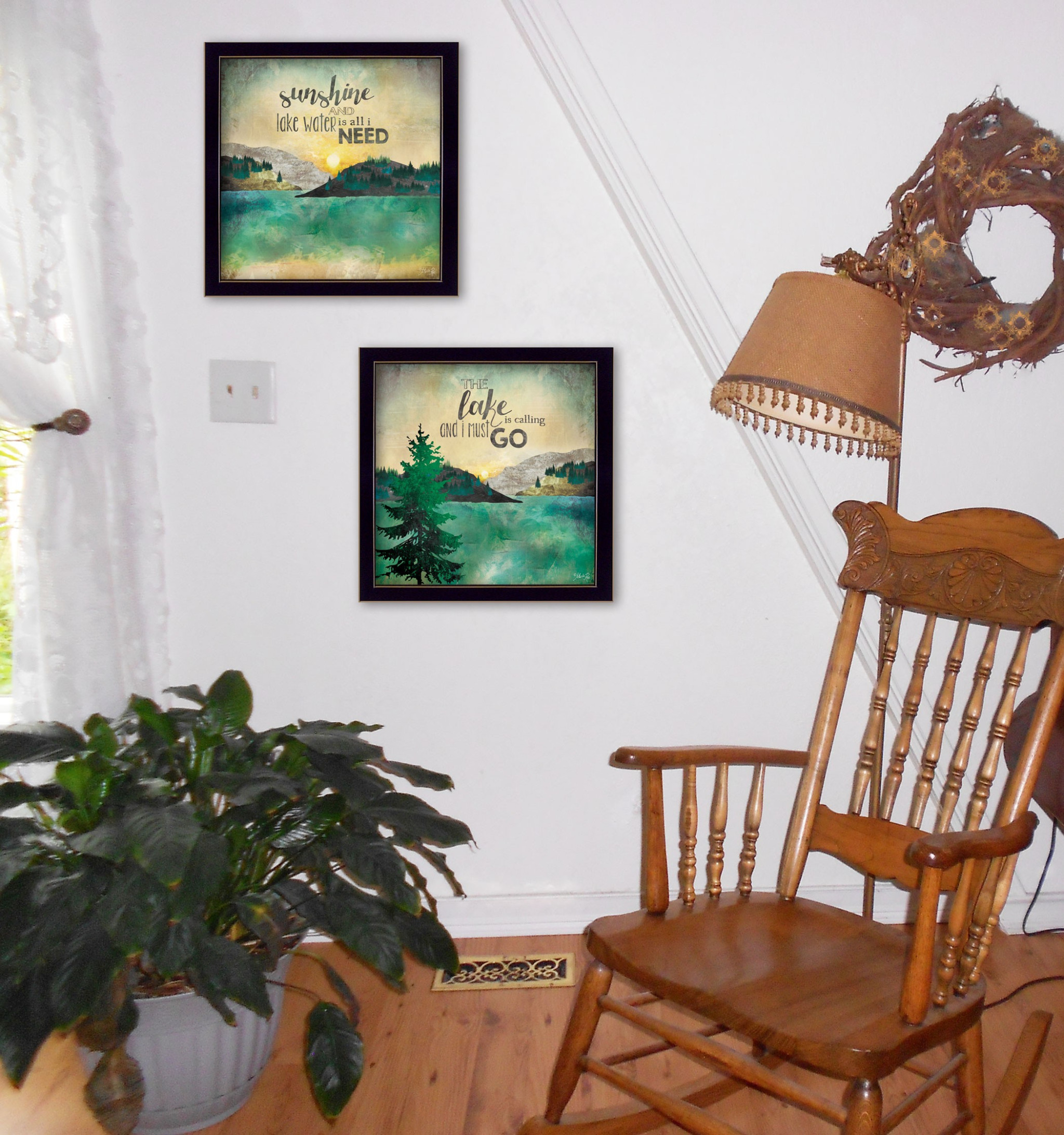 Add an air of fashion to your room and rejuvenate the space with this set of two the lake is calling black framed print wall art. This print is a visual artistic expression that allows you to decorate your space in style. Reproduced for you on paper, this hanging decorative accent will be a trendy and fashionable way to dress your walls. Hang on your wall to add some up to date fashion and decoration. Utilize this opportunity to create a focal point in the room with this fabulous wall decor option. 14-inch H x 28-inch W x 1.5-inch D