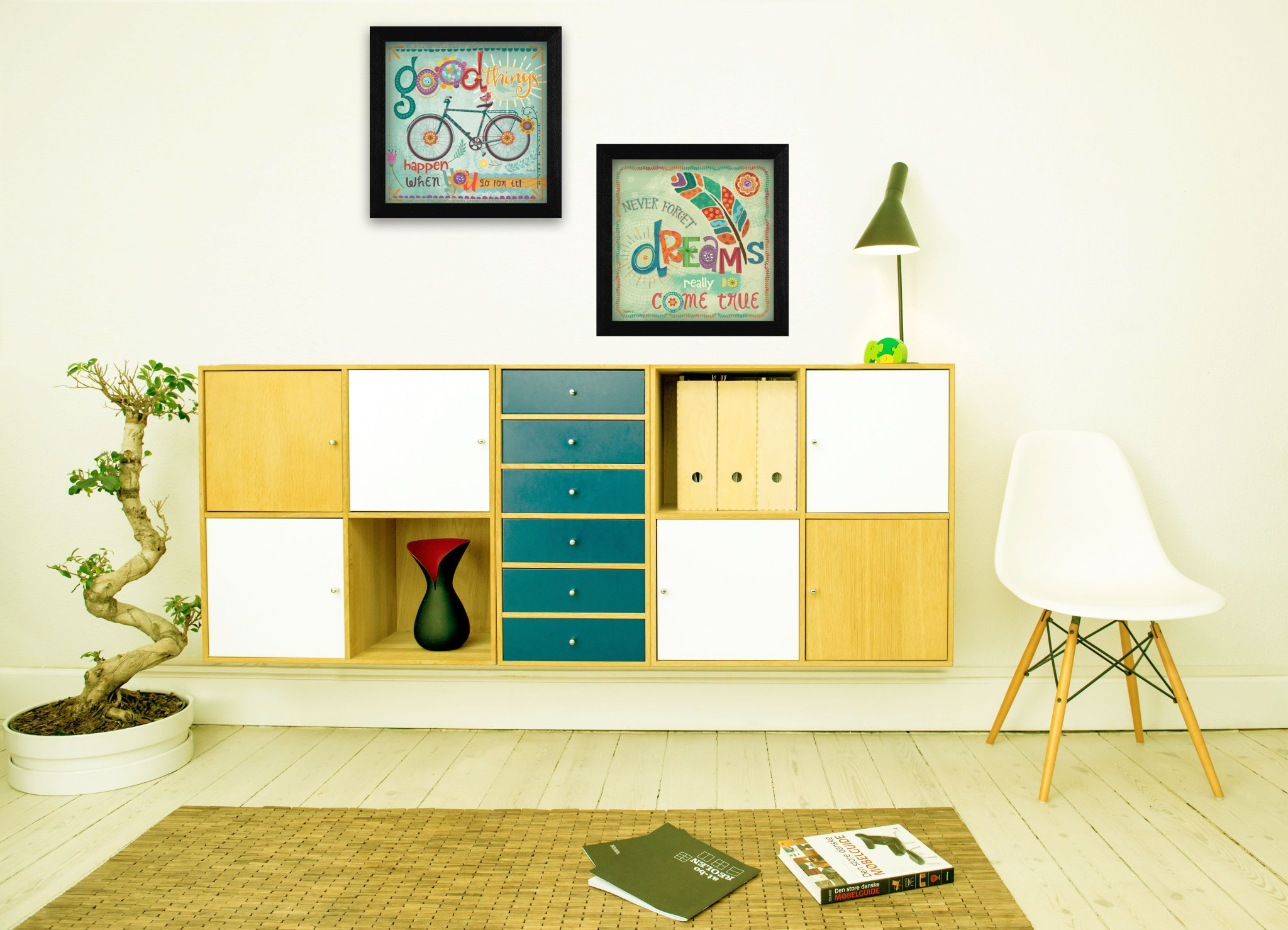 Bring some sizzle to your space with this eye-catching set of two good things black framed print wall art. This print is a visual artistic expression that allows you to decorate your space in style. Reproduced for you on paper, this hanging decorative accent will be a trendy and fashionable way to dress your walls. Adding this hanging wall art to your space to make your room feel more finished and attractive. Instantly liven up your space with this art that brings color and dimension to your walls. 14-inch H x 28-inch W x 1.5-inch D
