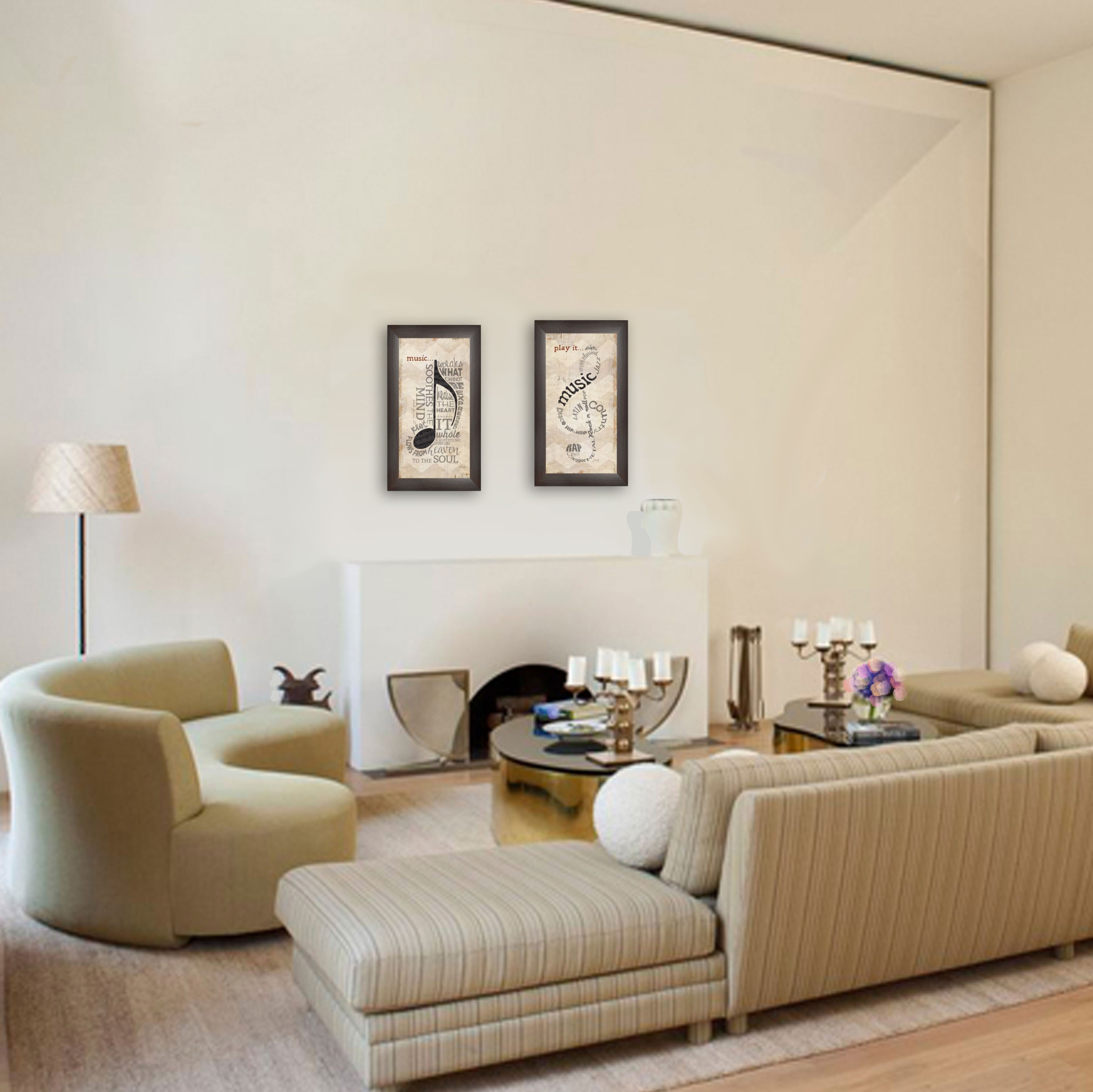 This set of two musical notes brown framed print wall art will add a beautiful decorative accent to your decor. This print is a visual artistic expression that allows you to decorate your space in style. Reproduced for you on paper, this hanging decorative accent will be a trendy and fashionable way to dress your walls. Adding this hanging wall art to your space to make your room feel more finished and attractive. Utilize this opportunity to create a focal point in the room with this fabulous wall decor option. 21-inch H x 12-inch W x 1-inch D