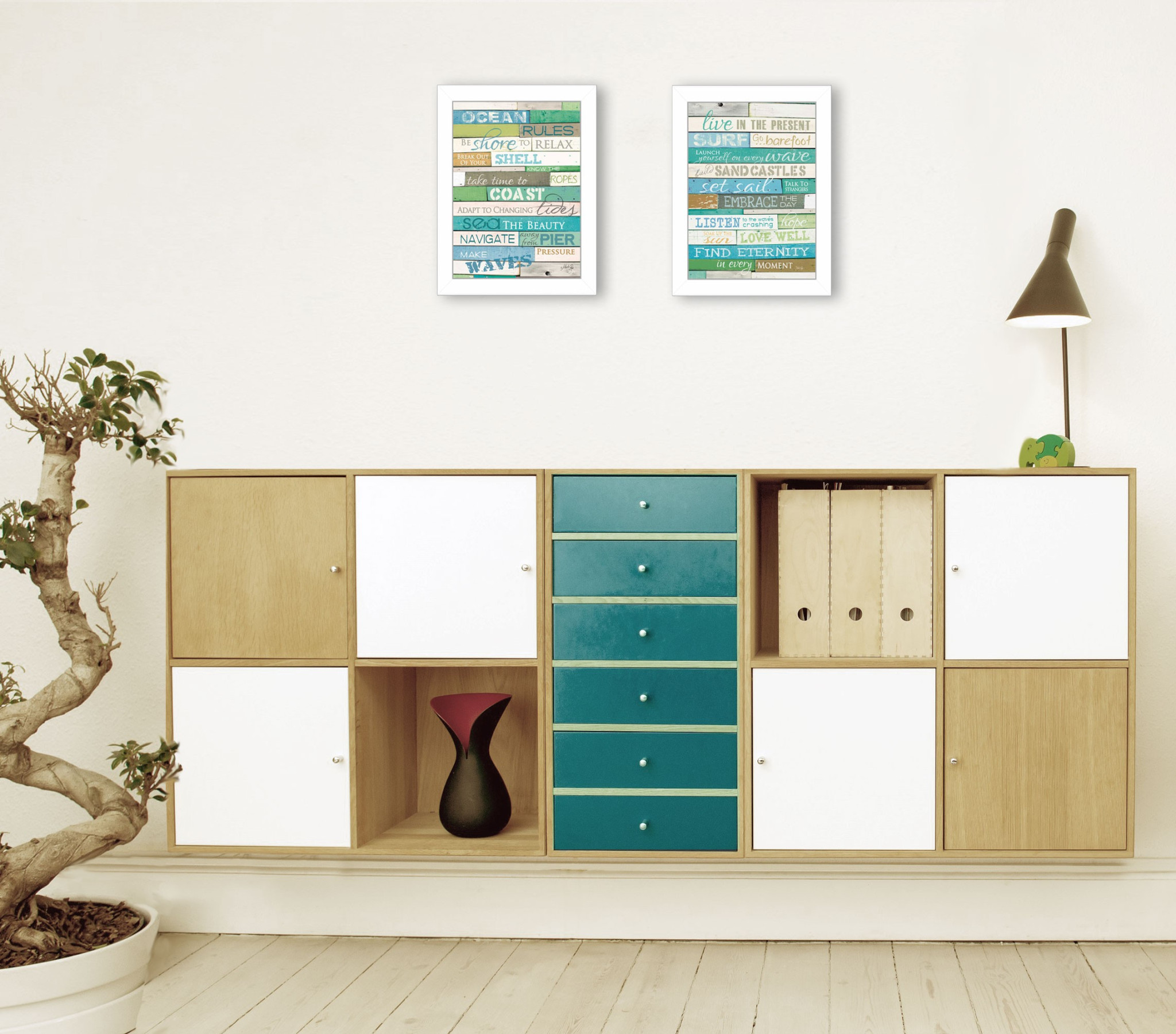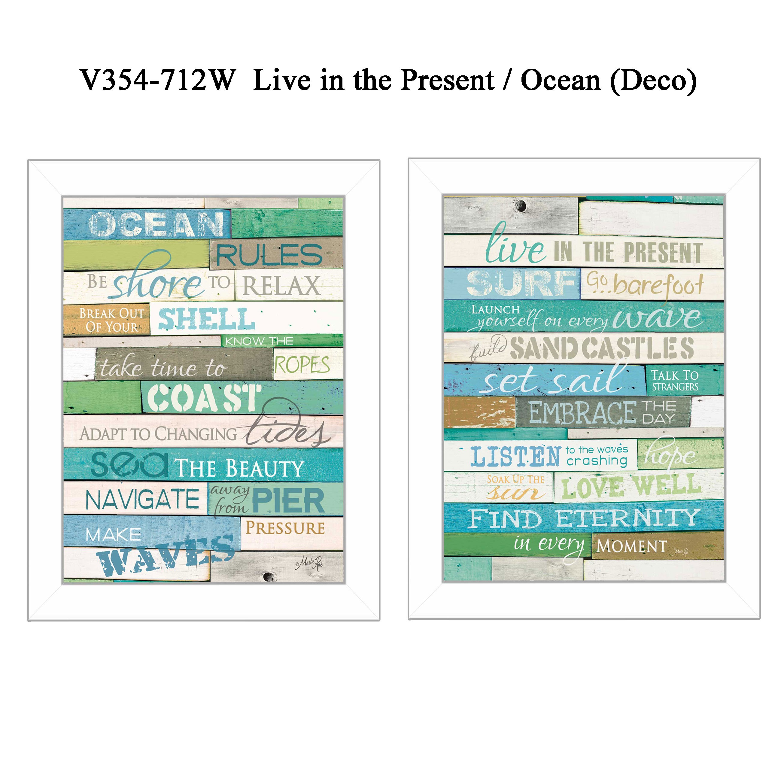 Bring some sizzle to your space with this eye-catching set of two live in the present 2 white framed print wall art. This print is a visual artistic expression that allows you to decorate your space in style. Reproduced for you on paper, this hanging decorative accent will be a trendy and fashionable way to dress your walls. Adding this hanging wall art to your space to make your room feel more finished and attractive. Utilize this opportunity to create a focal point in the room with this fabulous wall decor option. 14-inch H x 10-inch W x 1-inch D
