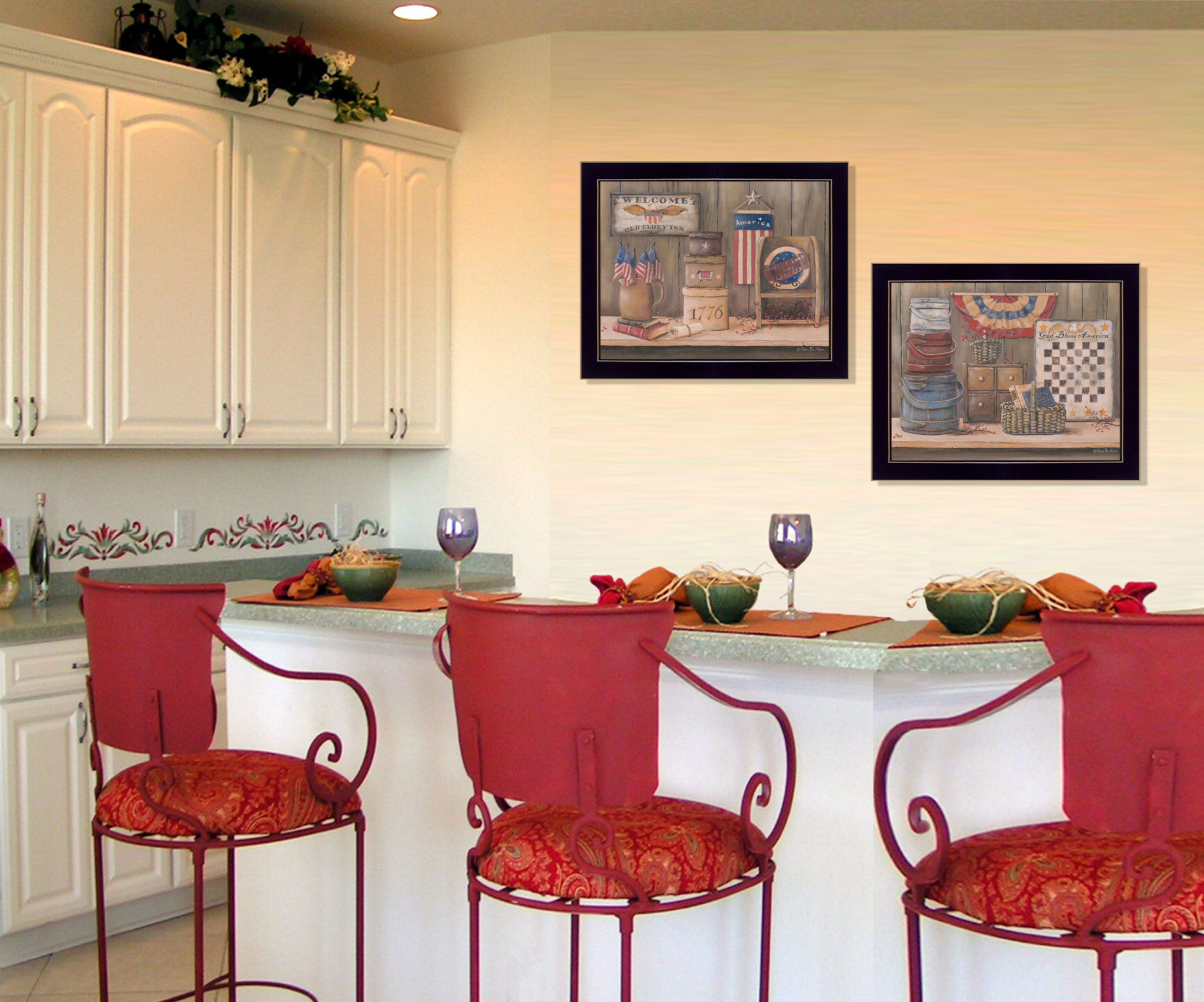 This set of two sweet land of liberty 1 black framed print wall art will add a beautiful decorative accent to your decor. This print is a visual artistic expression that allows you to decorate your space in style. Reproduced for you on paper, this hanging decorative accent will be a trendy and fashionable way to dress your walls. Adding this hanging wall art to your space to make your room feel more finished and attractive. Utilize this opportunity to create a focal point in the room with this fabulous wall decor option. 14-inch H x 18-inch W x 1-inch D