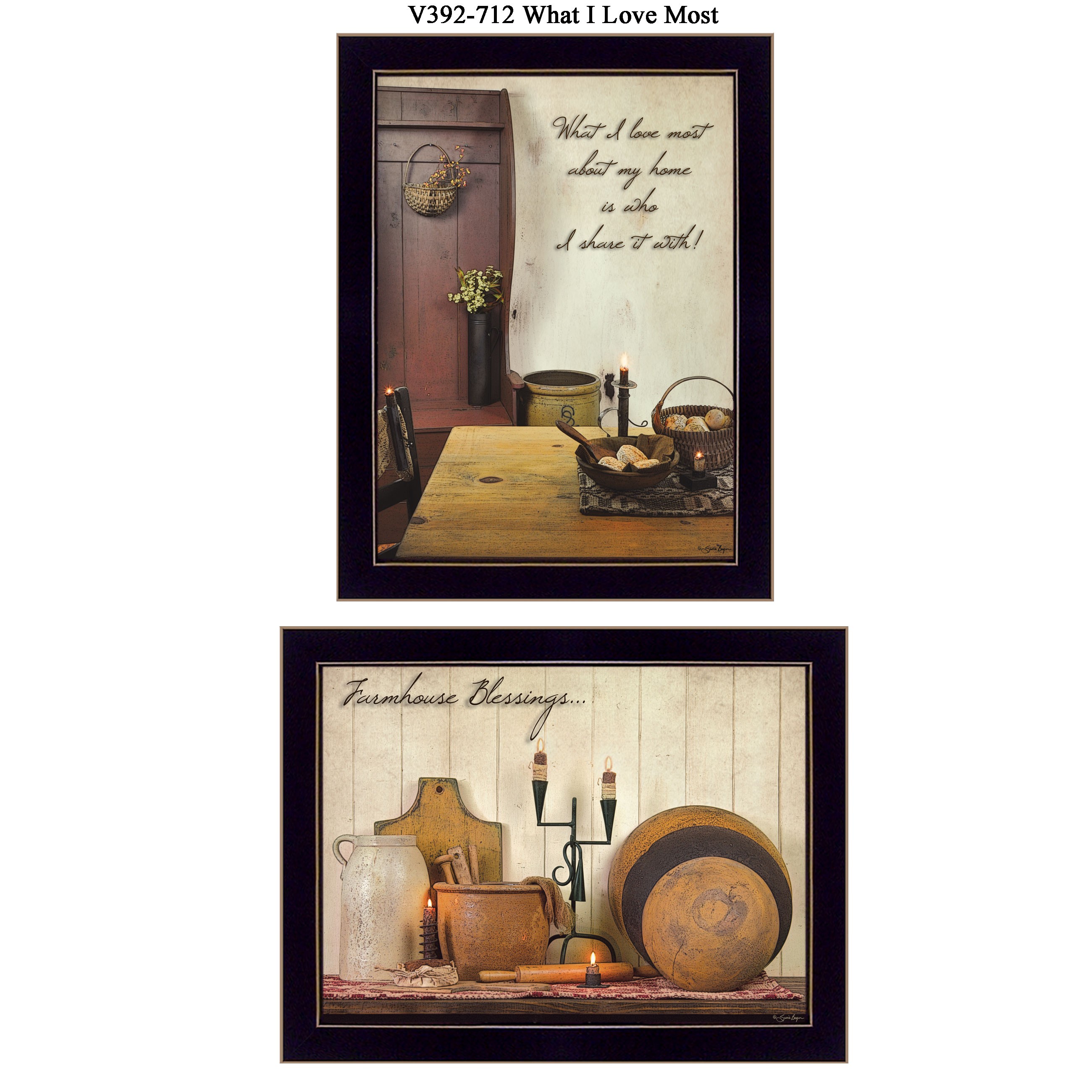 Add an air of fashion to your room and rejuvenate the space with this set of two what i love most black framed print wall art. This print is a visual artistic expression that allows you to decorate your space in style. Reproduced for you on paper, this hanging decorative accent will be a trendy and fashionable way to dress your walls. Adding this hanging wall art to your space to make your room feel more finished and attractive. Utilize this opportunity to create a focal point in the room with this fabulous wall decor option. 14-inch H x 18-inch W x 1-inch D