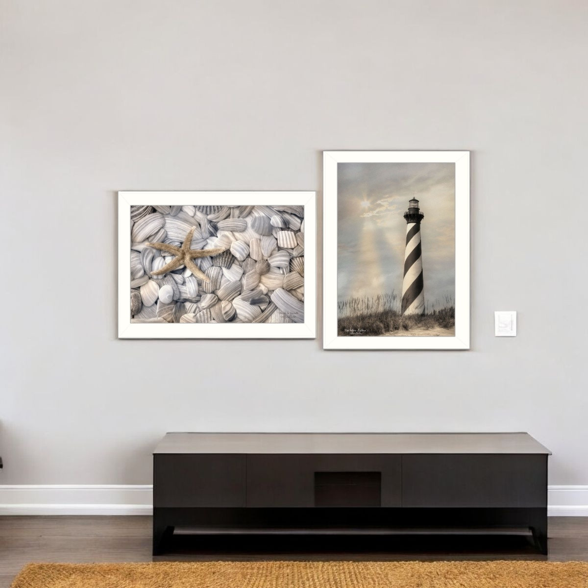 cape hatteras lighthouse sea shells, art ready hang framed poster, lighthouse sea shells collection piece, hatteras lighthouse sea shells collection, cape hatteras lighthouse |