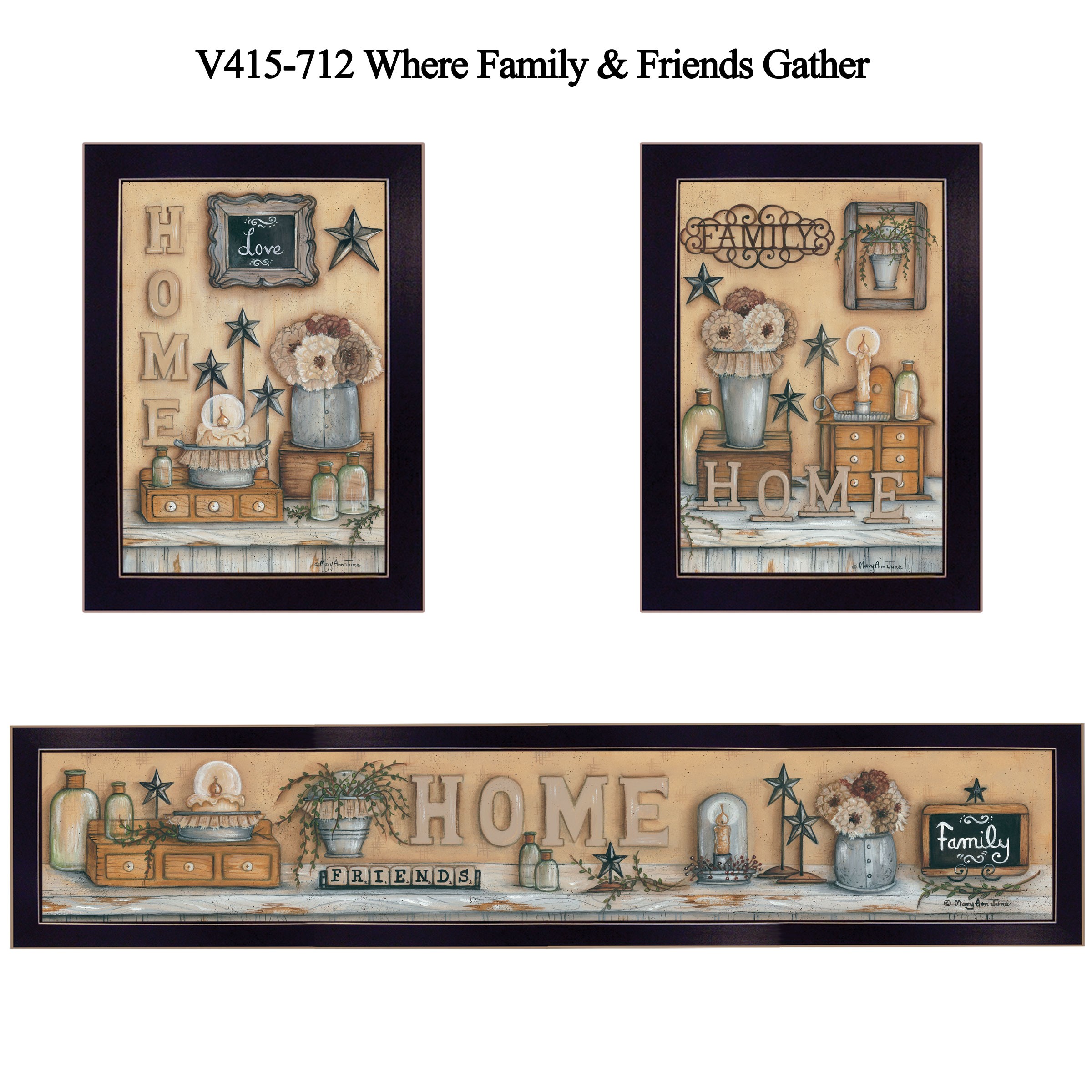 The set of three where family and friends gather 1 black framed print wall art is the perfect decorative accessory for your home. This print is a visual artistic expression that allows you to decorate your space in style. Reproduced for you on paper, this hanging decorative accent will be a trendy and fashionable way to dress your walls. Adding this hanging wall art to your space to make your room feel more finished and attractive. Instantly liven up your space with this art that brings color and dimension to your walls. 16-inch H x 38-inch W x 1-inch D