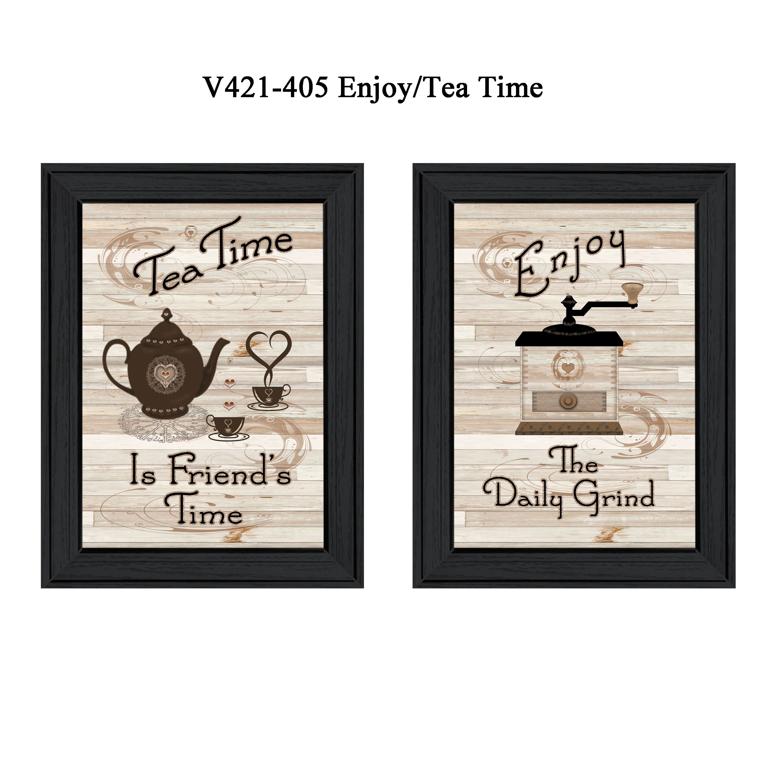 The set of two enjoy tea time 1 black framed print kitchen wall art is the perfect decorative accessory for your home. This print is a visual artistic expression that allows you to decorate your space in style. Reproduced for you on paper, this hanging decorative accent will be a trendy and fashionable way to dress your walls. Adding this hanging wall art to your space to make your room feel more finished and attractive. Utilize this opportunity to create a focal point in the room with this fabulous wall decor option. 10-inch H x 14-inch W x 1-inch D
