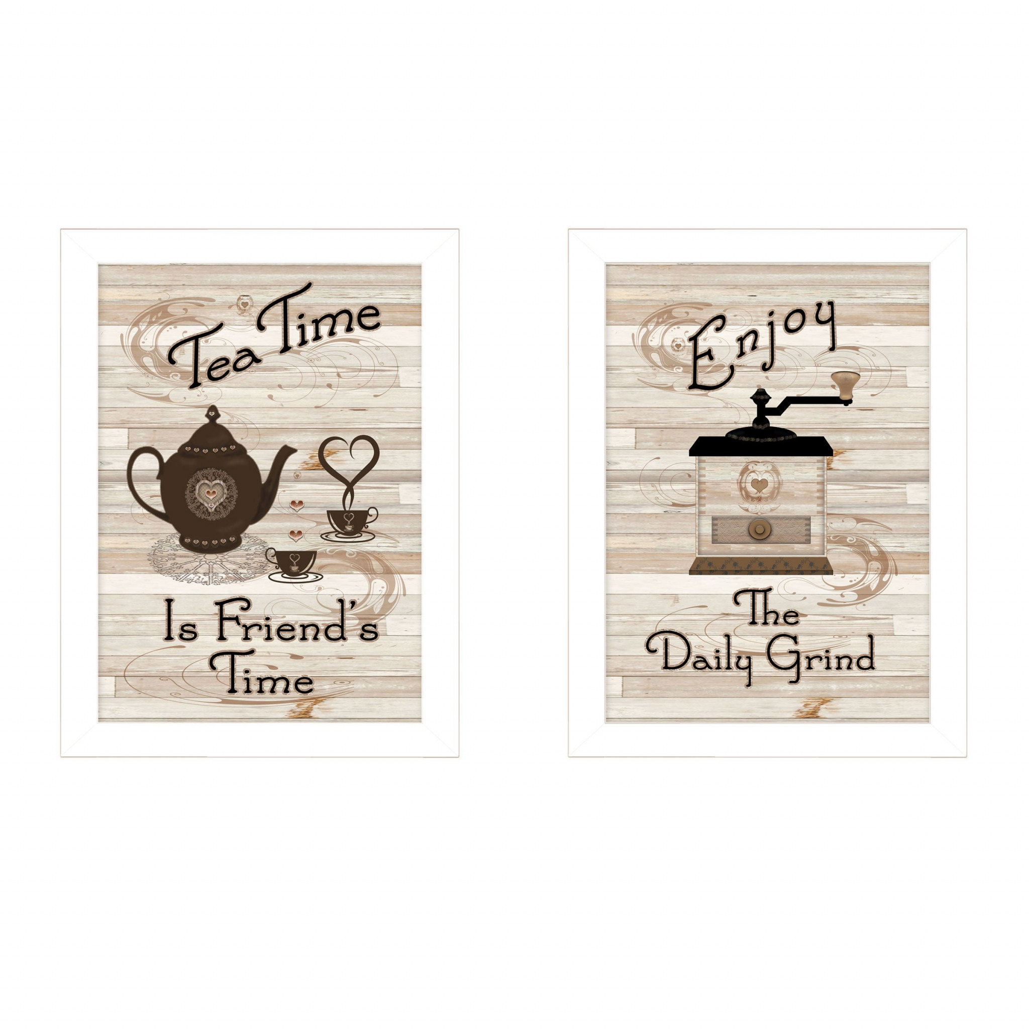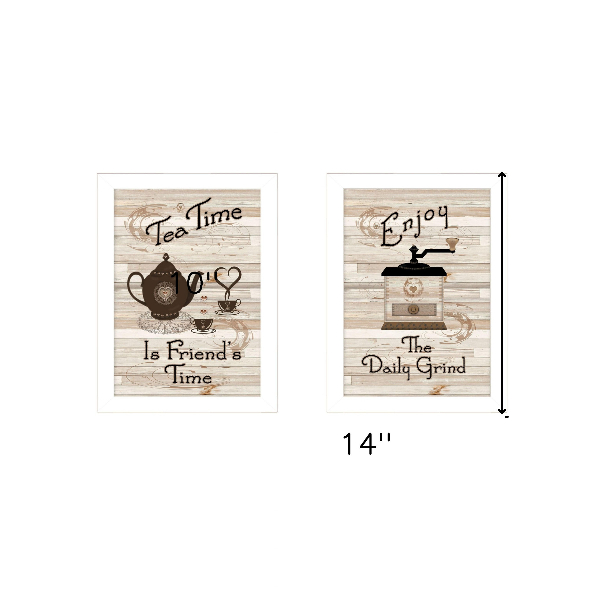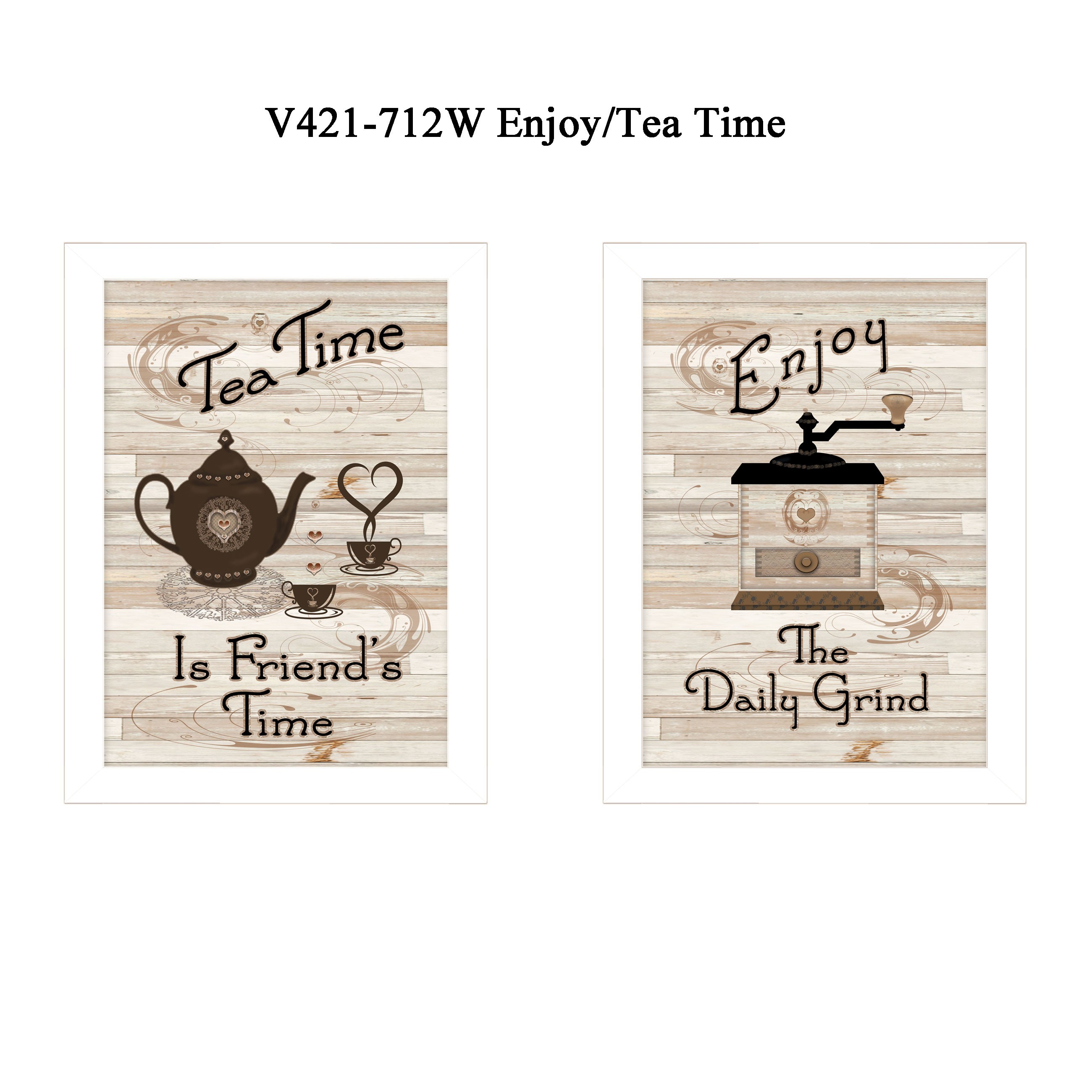 This set of two enjoy tea time 3 white framed print kitchen wall art will add a beautiful decorative accent to your decor. This print is a visual artistic expression that allows you to decorate your space in style. Reproduced for you on paper, this hanging decorative accent will be a trendy and fashionable way to dress your walls. Hang on your wall to add some up to date fashion and decoration. Instantly liven up your space with this art that brings color and dimension to your walls. 10-inch H x 14-inch W x 1-inch D