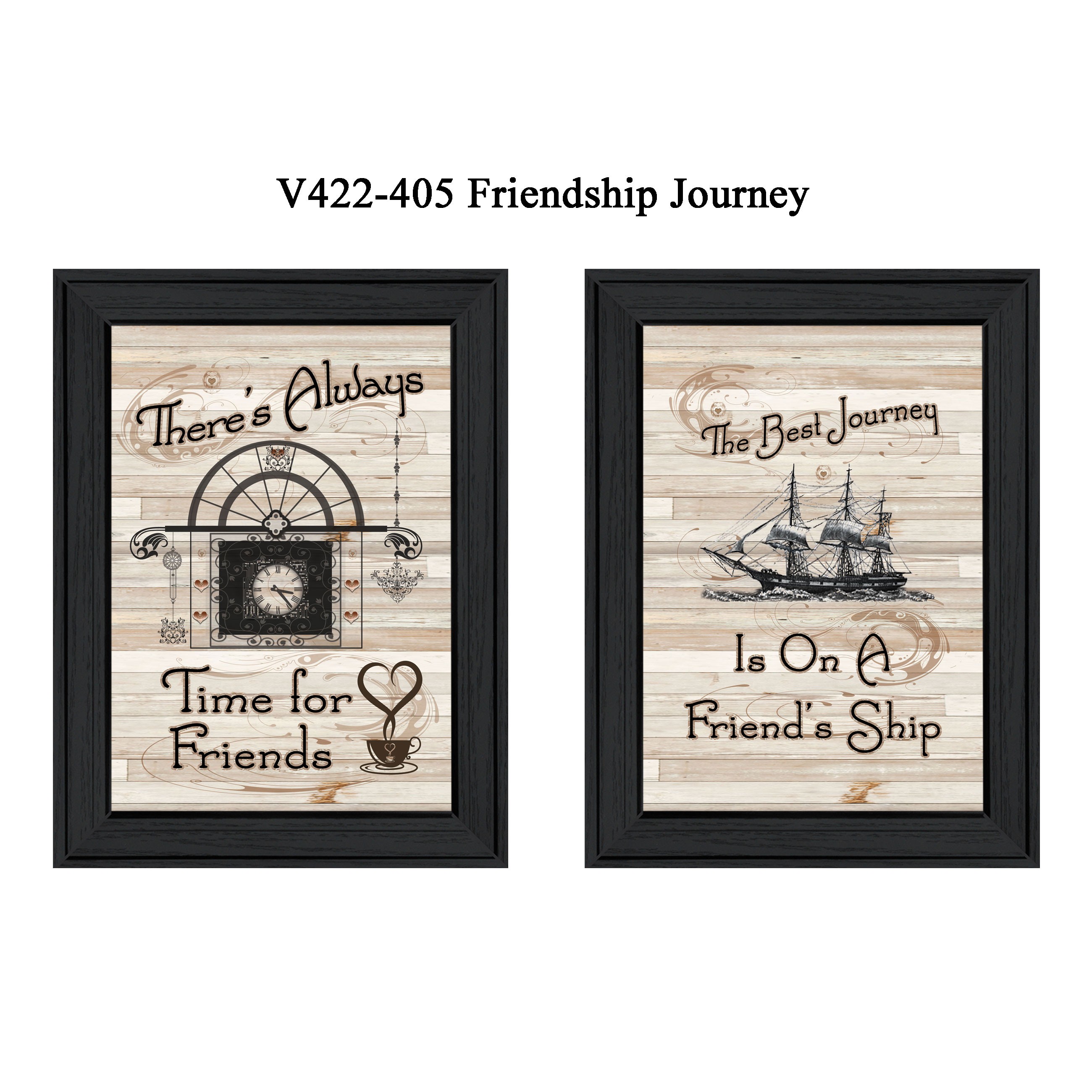 The set of two friendship journey 1 black framed print kitchen wall art is the perfect decorative accessory for your home. This print is a visual artistic expression that allows you to decorate your space in style. Reproduced for you on paper, this hanging decorative accent will be a trendy and fashionable way to dress your walls. Adding this hanging wall art to your space to make your room feel more finished and attractive. Instantly liven up your space with this art that brings color and dimension to your walls. 15-inch H x 11-inch W x 1-inch D