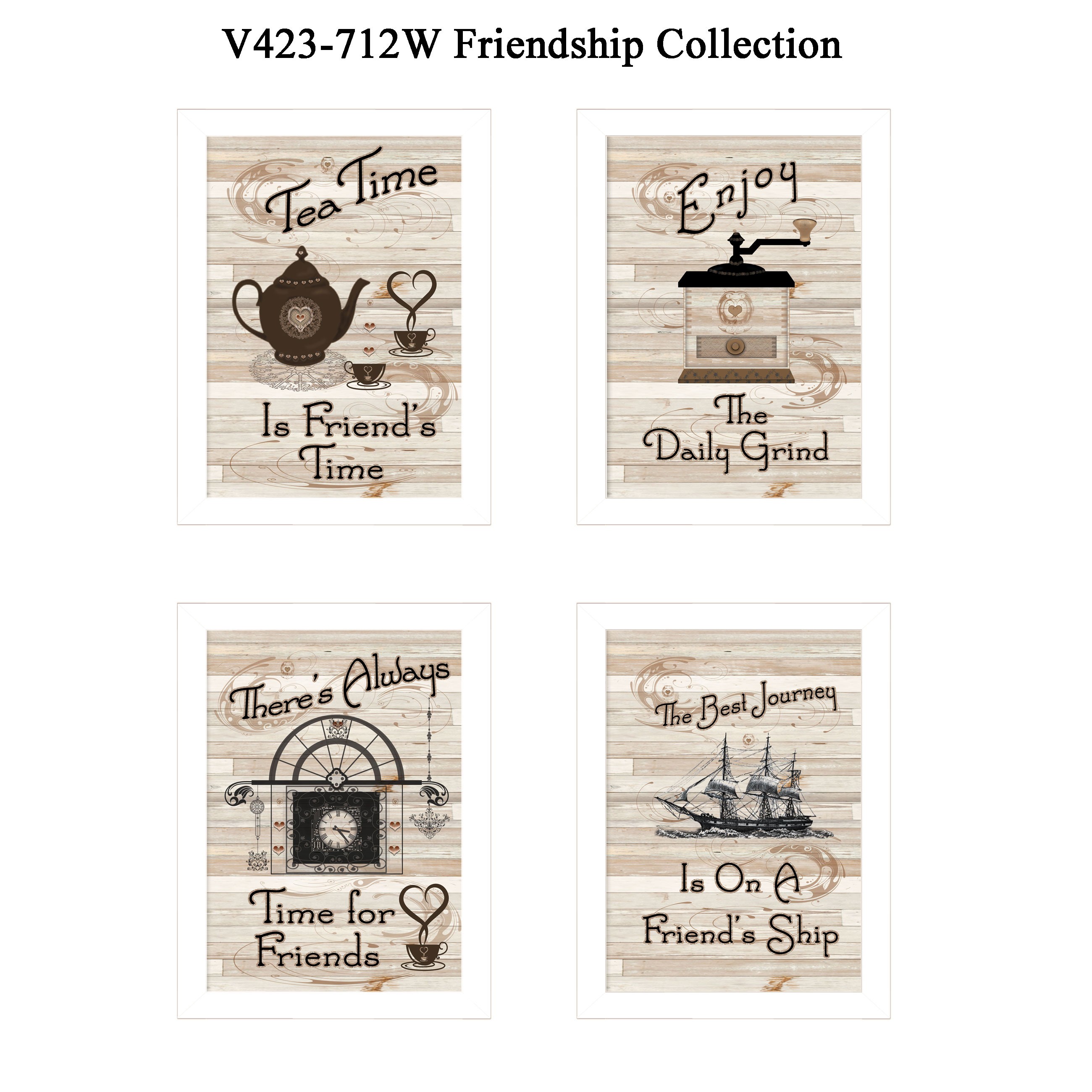 This set of four friendship 3 white framed print kitchen wall art will add a beautiful decorative accent to your decor. This print is a visual artistic expression that allows you to decorate your space in style. Reproduced for you on paper, this hanging decorative accent will be a trendy and fashionable way to dress your walls. Hang on your wall to add some up to date fashion and decoration. Utilize this opportunity to create a focal point in the room with this fabulous wall decor option. 14-inch H x 10-inch W x 1-inch D