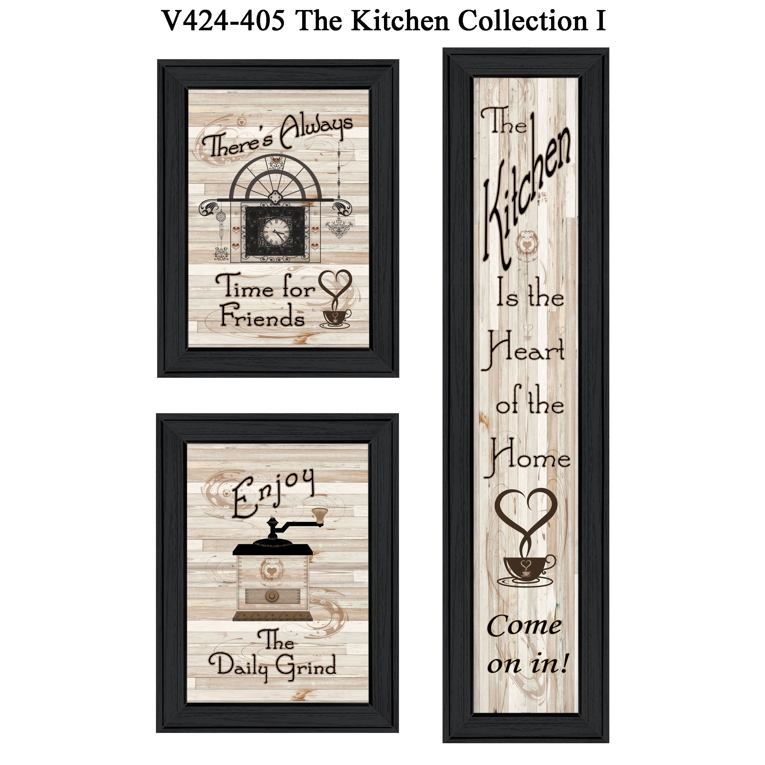 This set of three the kitchen collection i 2 black framed print kitchen wall art will add a beautiful decorative accent to your decor. This print is a visual artistic expression that allows you to decorate your space in style. Reproduced for you on paper, this hanging decorative accent will be a trendy and fashionable way to dress your walls. Adding this hanging wall art to your space to make your room feel more finished and attractive. Utilize this opportunity to create a focal point in the room with this fabulous wall decor option. 32-inch H x 10-inch W x 1-inch D