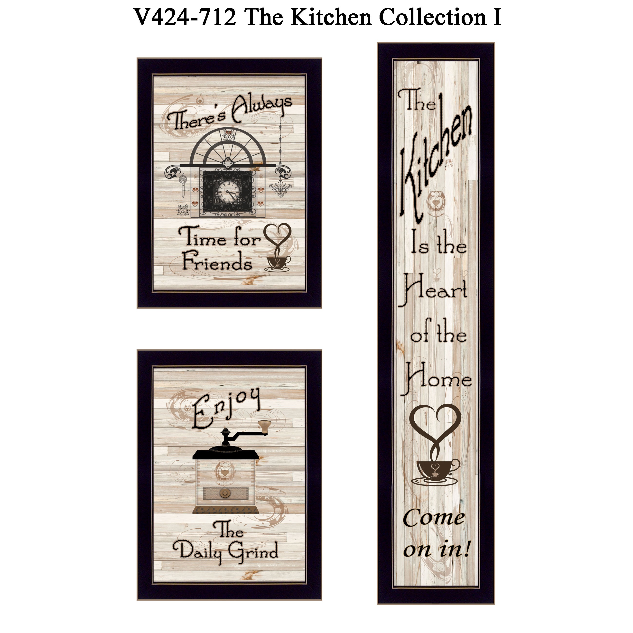 Add an air of fashion to your room and rejuvenate the space with this set of three the kitchen collection i 3 black framed print kitchen wall art. This print is a visual artistic expression that allows you to decorate your space in style. Reproduced for you on paper, this hanging decorative accent will be a trendy and fashionable way to dress your walls. Adding this hanging wall art to your space to make your room feel more finished and attractive. Instantly liven up your space with this art that brings color and dimension to your walls. 32-inch H x 10-inch W x 1-inch D