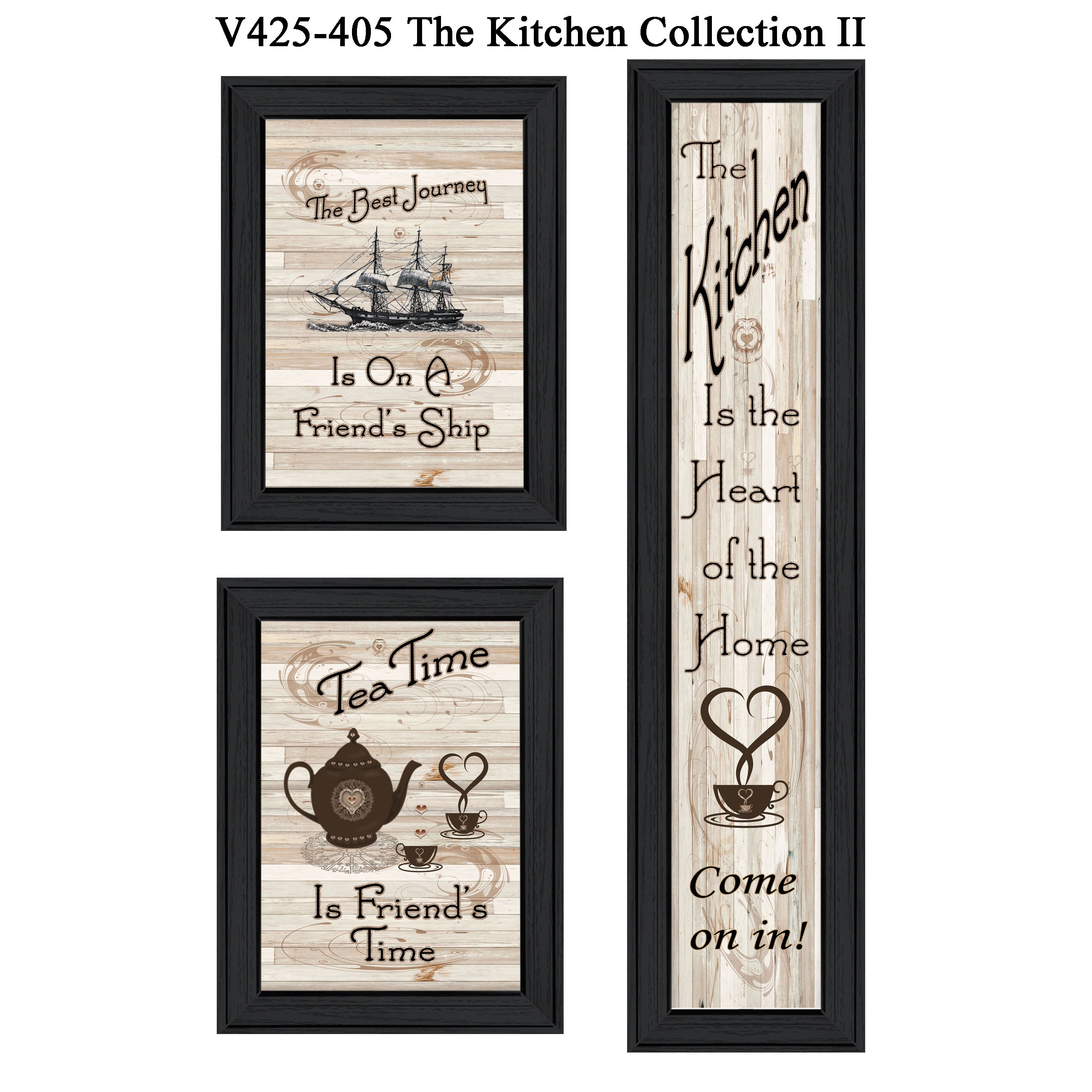 This set of three the kitchen collection ii 2 black framed print kitchen wall art will add a beautiful decorative accent to your decor. This print is a visual artistic expression that allows you to decorate your space in style. Reproduced for you on paper, this hanging decorative accent will be a trendy and fashionable way to dress your walls. Adding this hanging wall art to your space to make your room feel more finished and attractive. Utilize this opportunity to create a focal point in the room with this fabulous wall decor option. 33-inch H x 11-inch W x 1-inch D