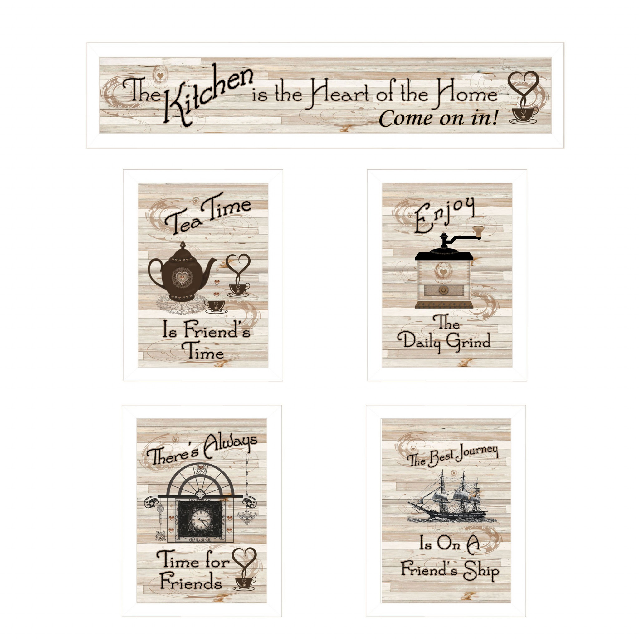 kitchen, Kitchen is the Heart of the home, coffee grinder, tea pot, tea, ship, friends, time, cup, cup of tea. , framed art, art, wall decor, decor, artwork, poster, print, mdf, framed decor, framed poster |