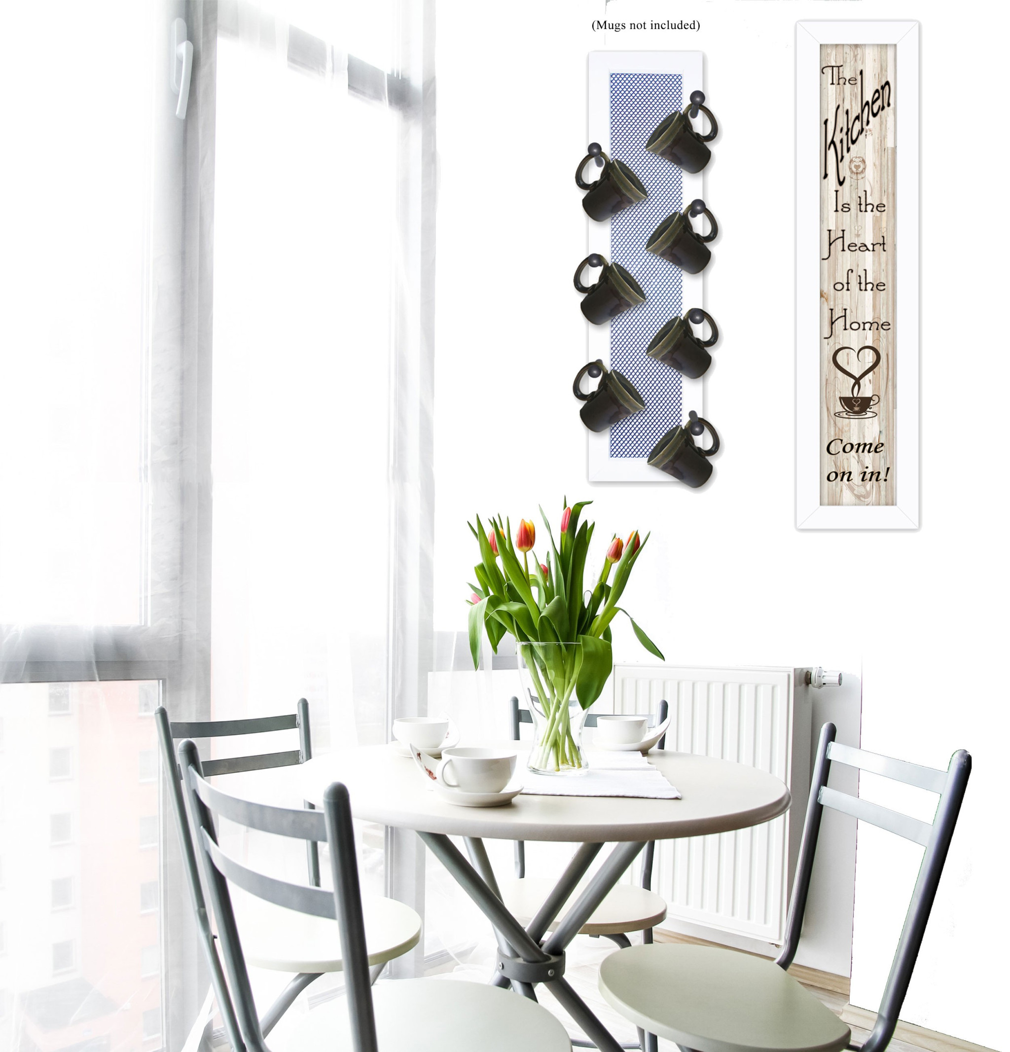 Unique and decorative, this set of two come on in with seven peg mug rack 3 white framed print kitchen wall art will leave a lasting impression. This print is a visual artistic expression that allows you to decorate your space in style. Reproduced for you on paper, this hanging decorative accent will be a trendy and fashionable way to dress your walls. Hang on your wall to add some up to date fashion and decoration. Instantly liven up your space with this art that brings color and dimension to your walls. 32-inch H x 7-inch W x 3-inch D