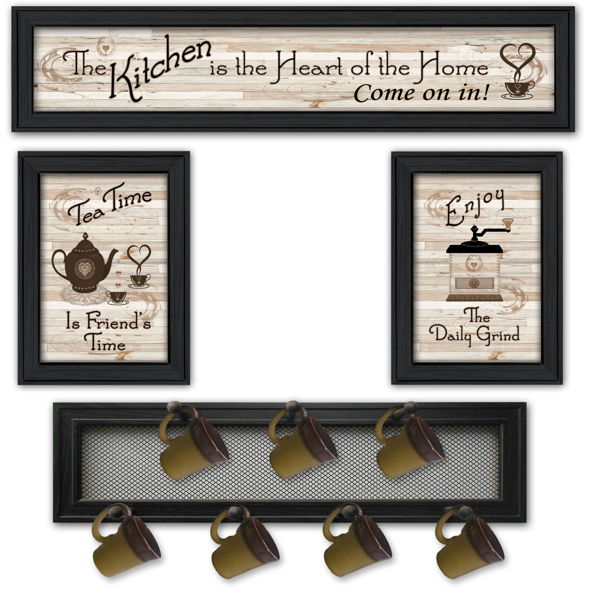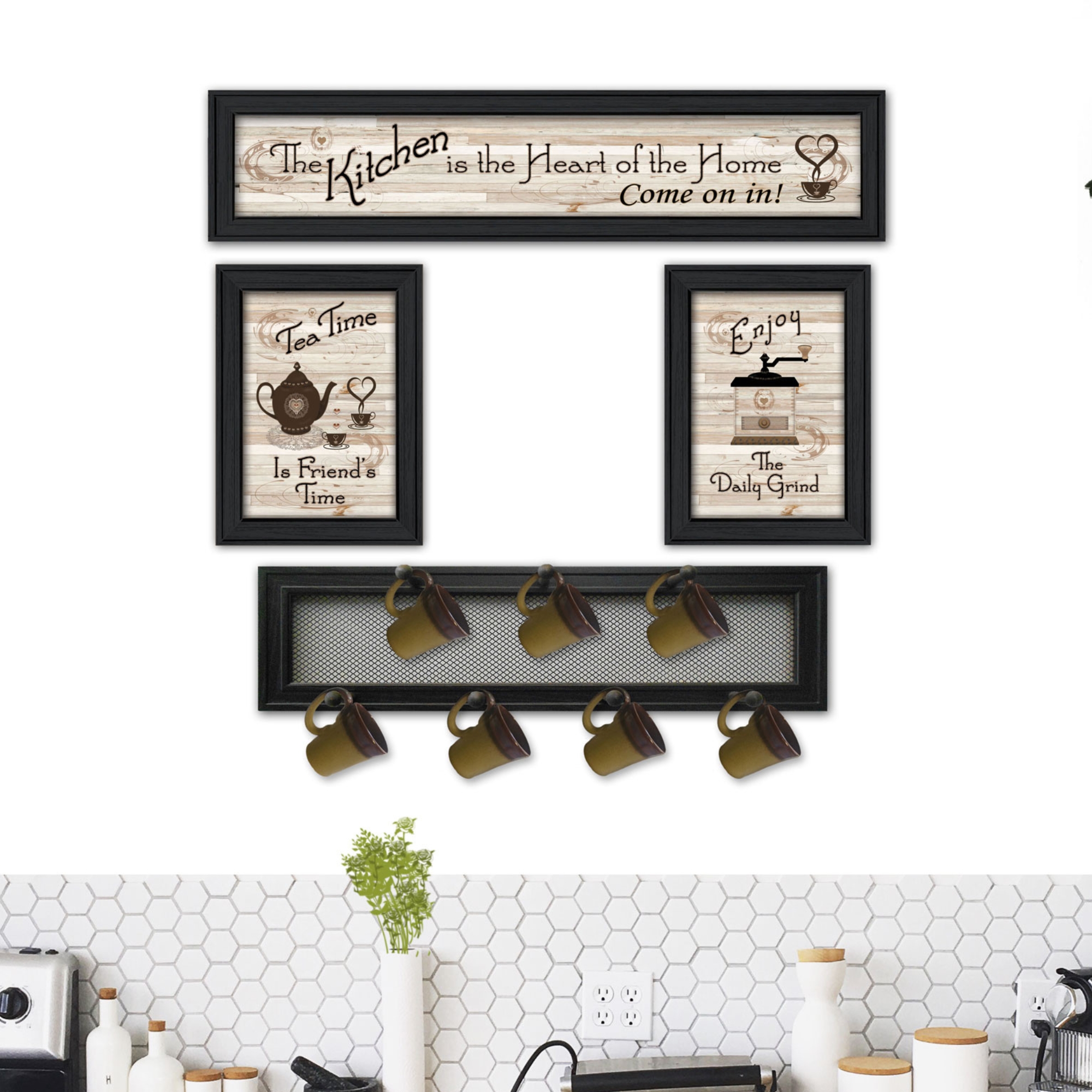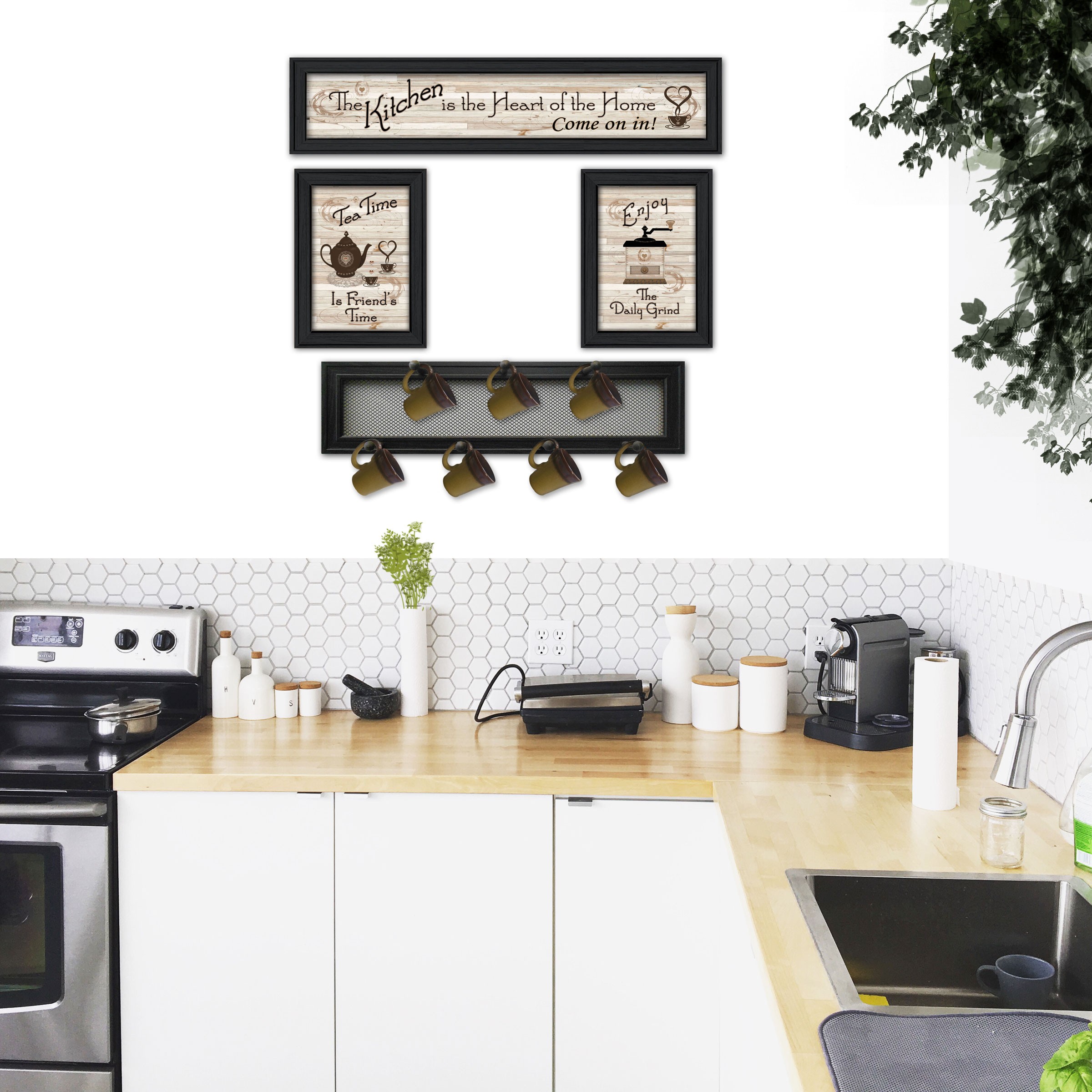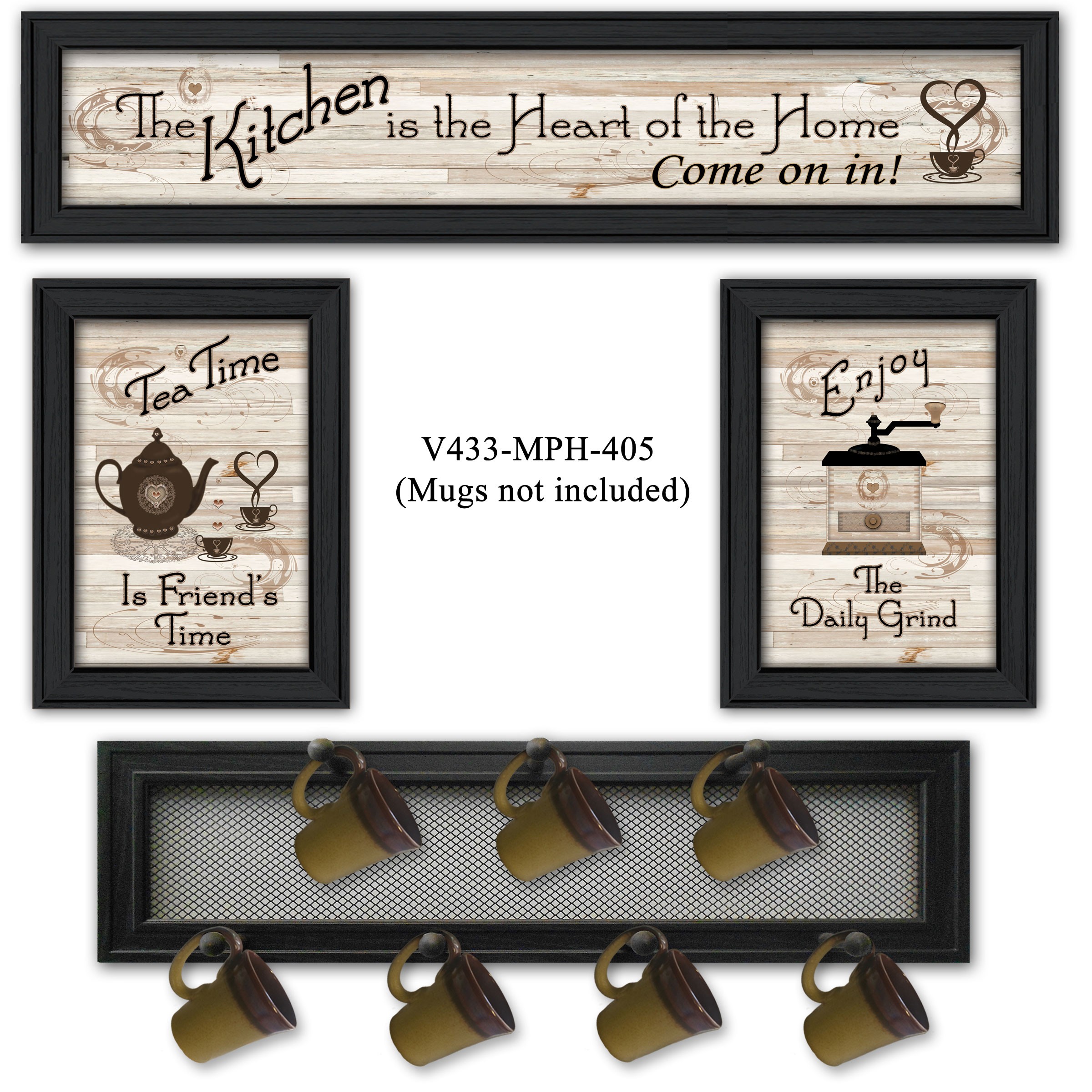 wooden mug rack, framed, mugs, 7 pegs, Horizontal, Kitchen, Heart, Home, tea, time, friends., framed art, art, wall decor, decor, artwork, poster, print, mdf, framed decor, framed poster |
