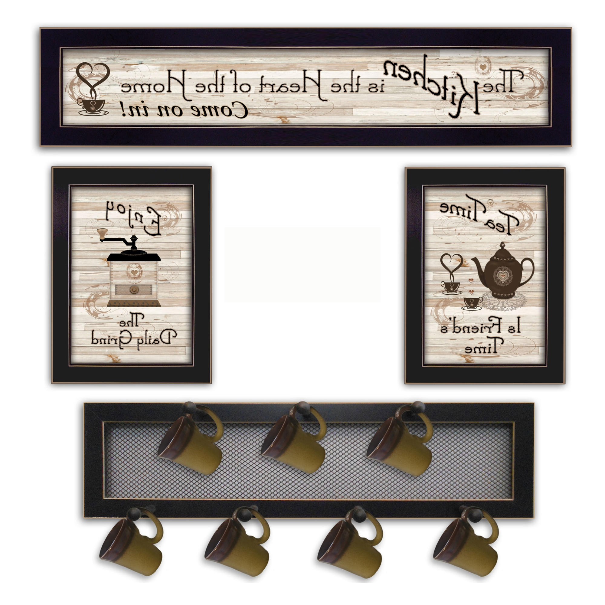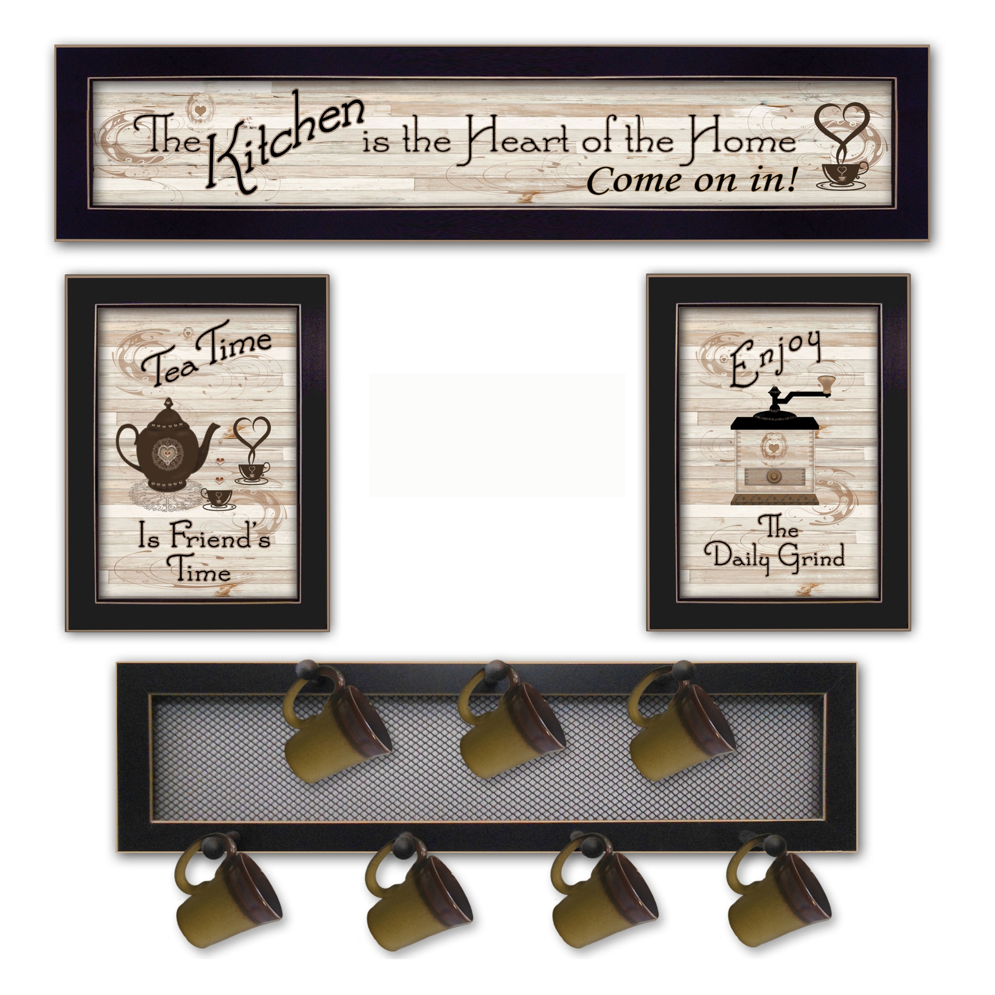 wooden mug rack, framed, mugs, 7 pegs, Horizontal, Kitchen, Heart, Home, tea, time, friends., framed art, art, wall decor, decor, artwork, poster, print, mdf, framed decor, framed poster |