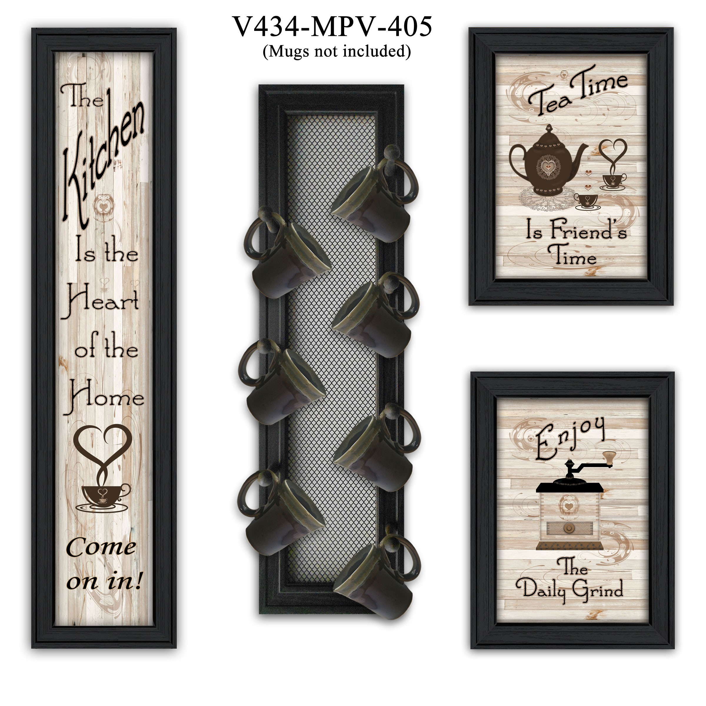 The set of four kitchen collection v with seven peg mug rack 2 black framed print kitchen wall art is the perfect decorative accessory for your home. This print is a visual artistic expression that allows you to decorate your space in style. Reproduced for you on paper, this hanging decorative accent will be a trendy and fashionable way to dress your walls. Hang on your wall to add some up to date fashion and decoration. Utilize this opportunity to create a focal point in the room with this fabulous wall decor option. 11-inch H x 33-inch W x 3-inch D