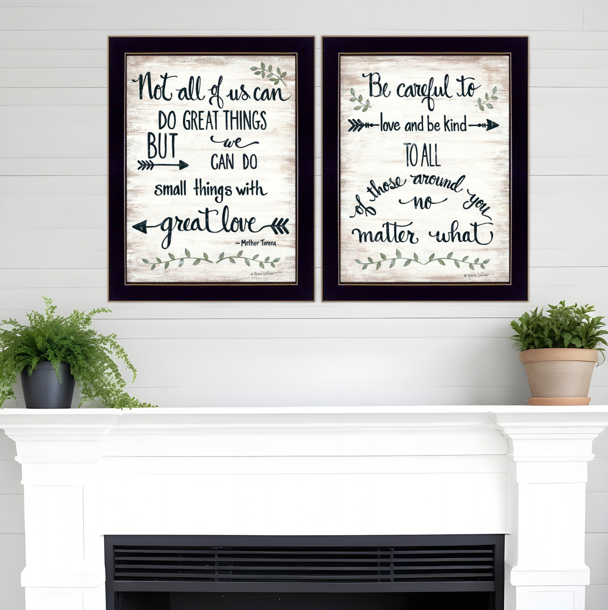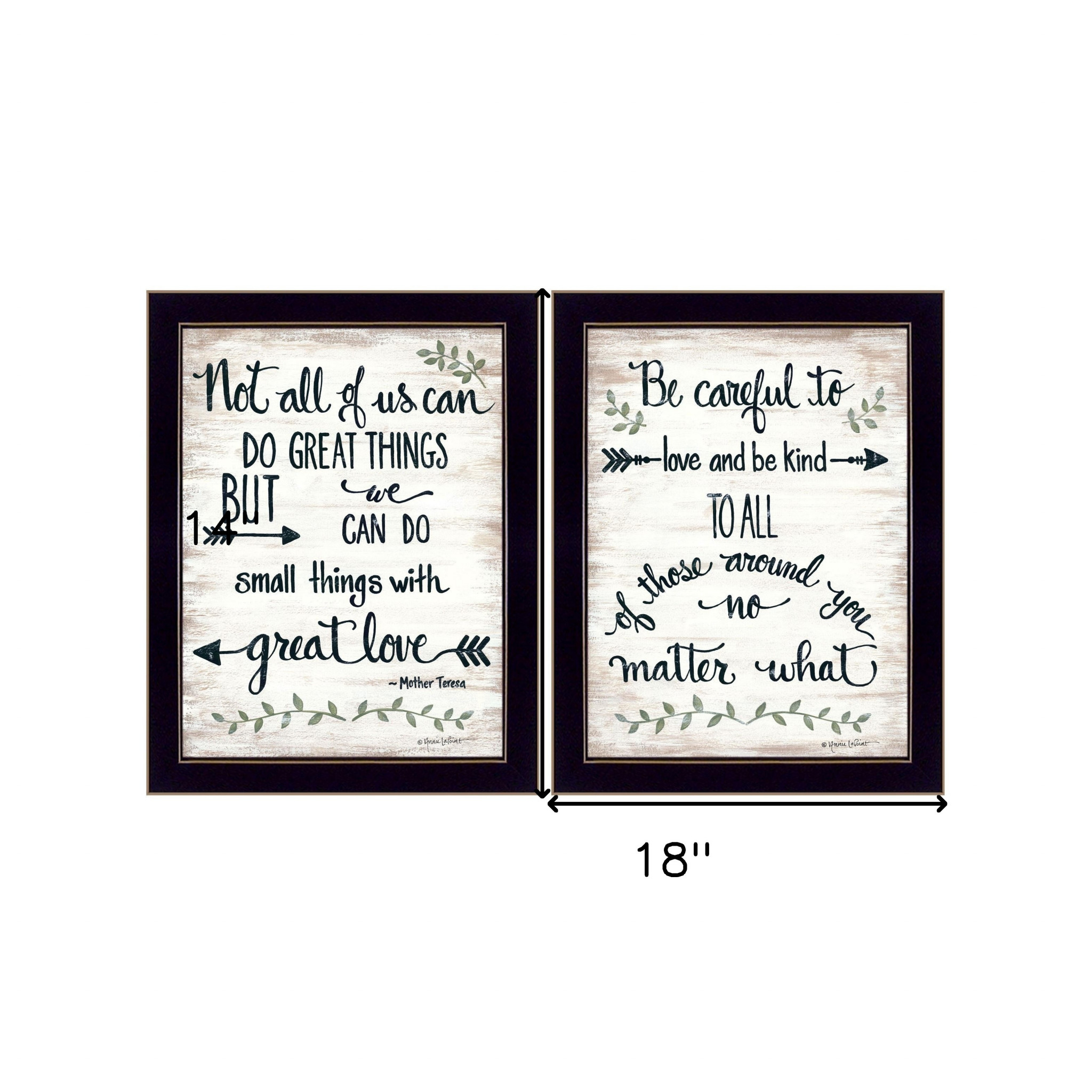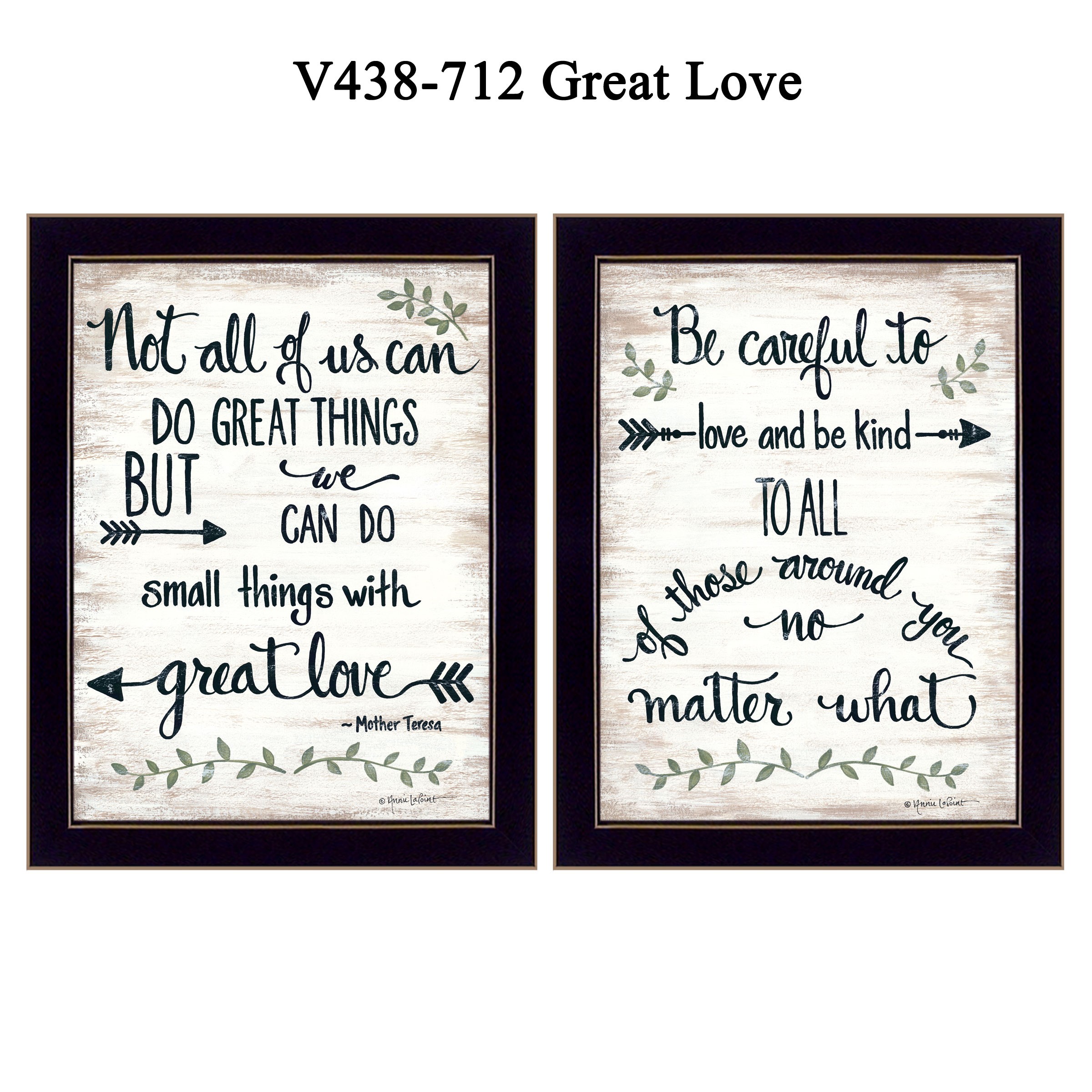 This set of two great love 1 black framed print wall art will add a beautiful decorative accent to your decor. This print is a visual artistic expression that allows you to decorate your space in style. Reproduced for you on paper, this hanging decorative accent will be a trendy and fashionable way to dress your walls. Hang on your wall to add some up to date fashion and decoration. Instantly liven up your space with this art that brings color and dimension to your walls. 18-inch H x 14-inch W x 1-inch D