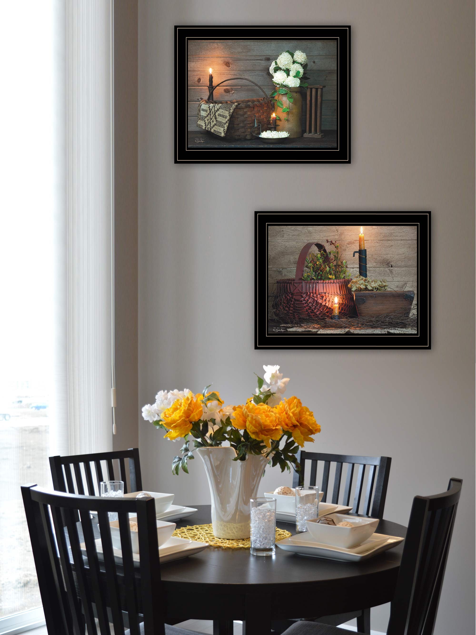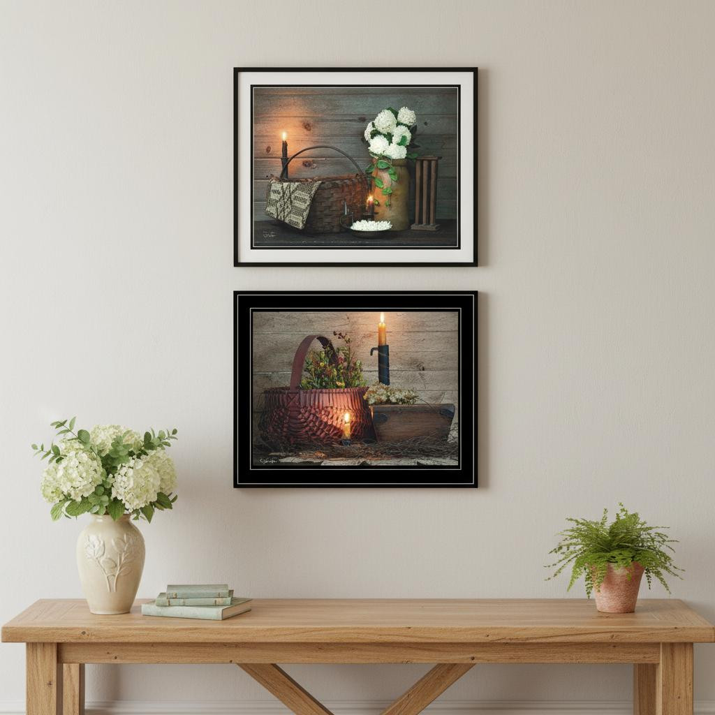 Still Life, Candle, Basket, White Flowers, wooden bowl, red basket, den, family room, livingroom, cabin, lodge, , framed art, art, wall decor, decor, artwork, poster, print, mdf, framed decor, framed poster |