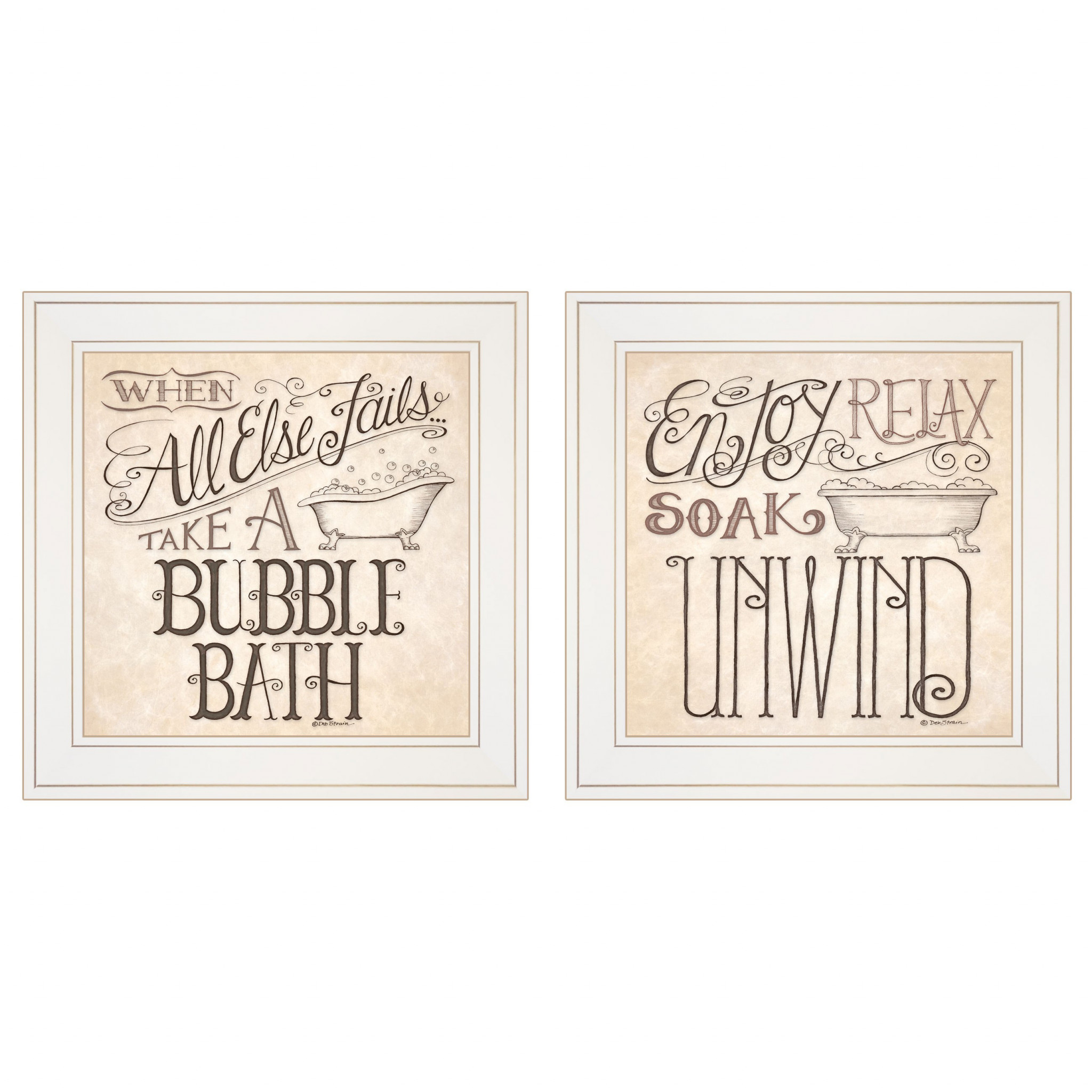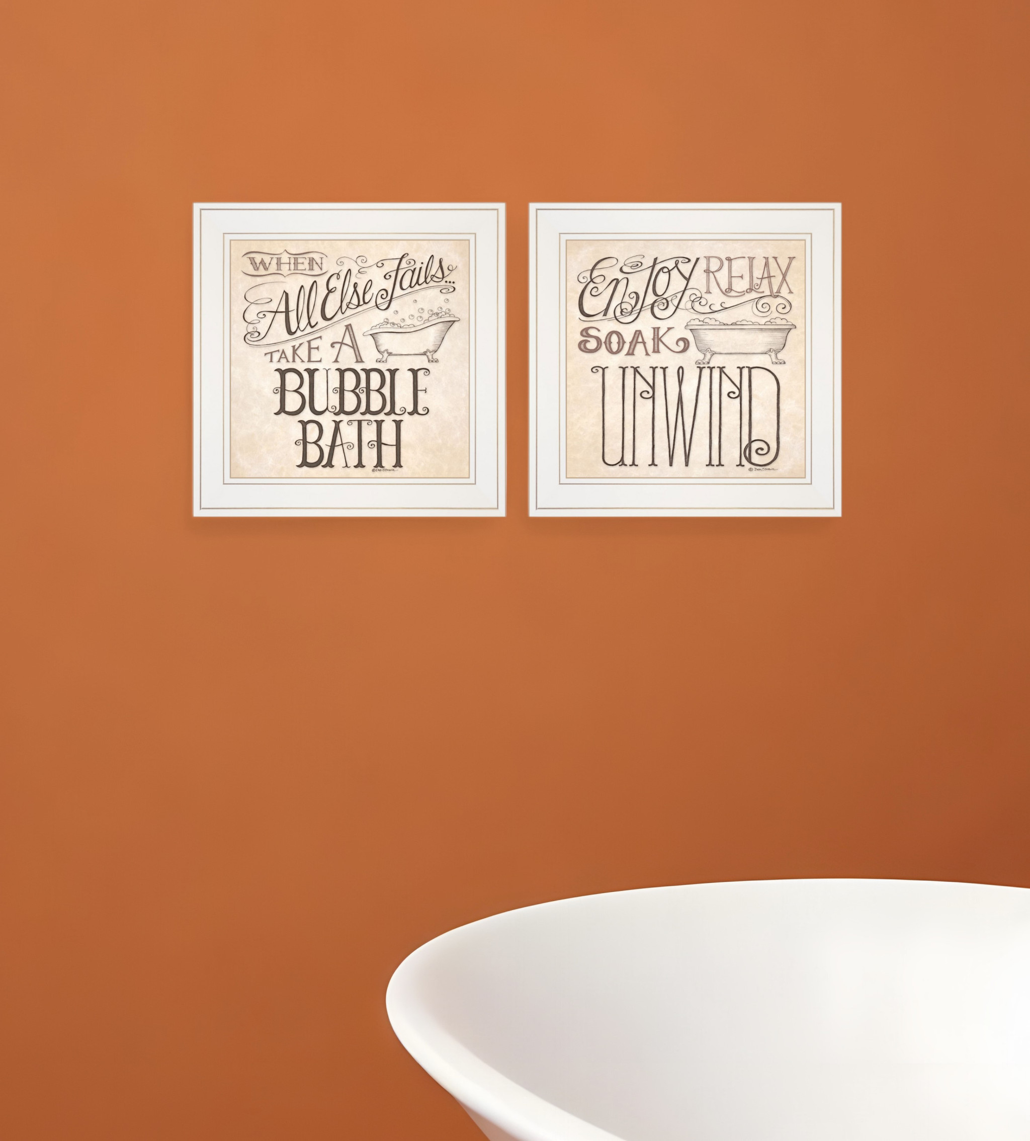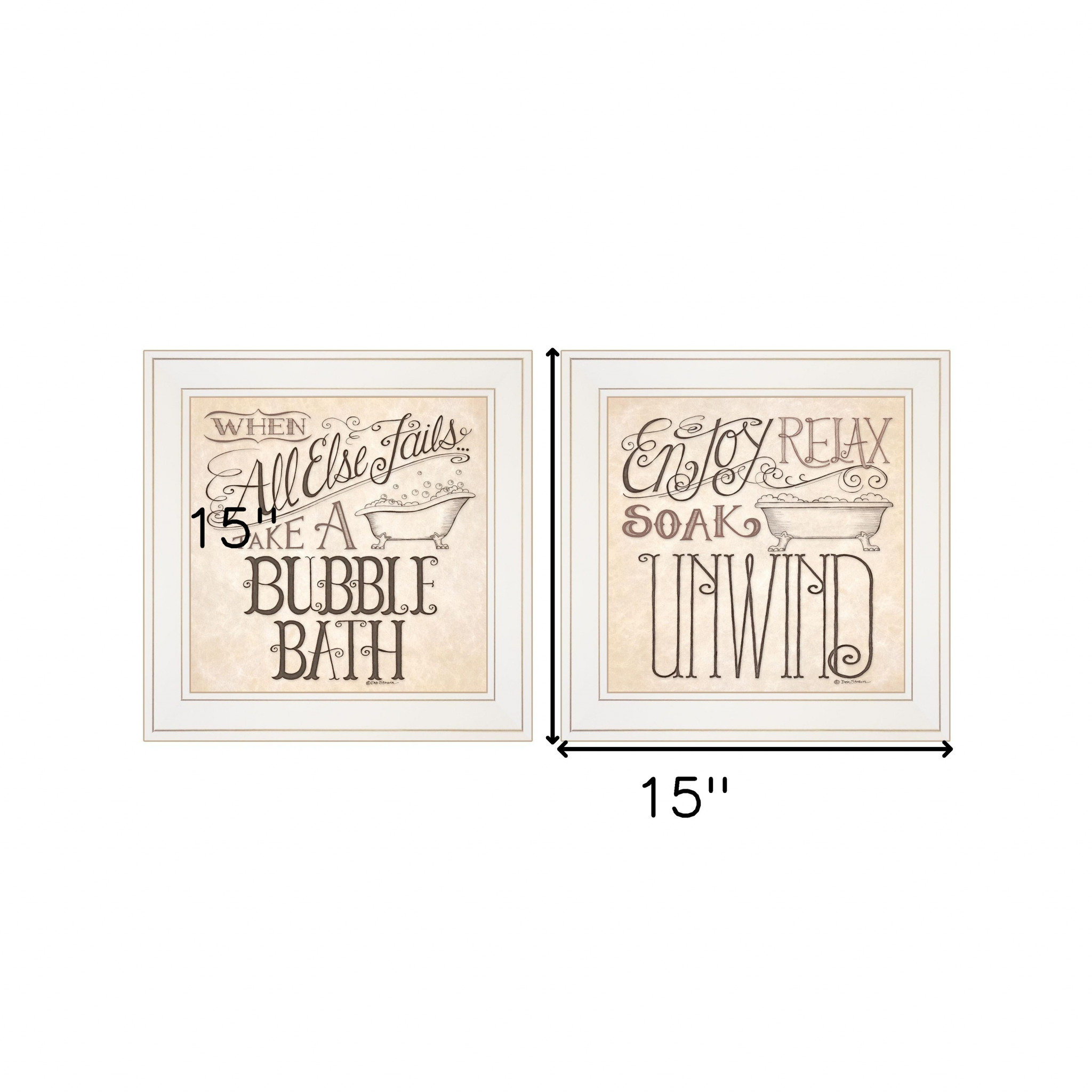 The set of two soak and unwind 2 white framed print bathroom wall art is the perfect decorative accessory for your home. This print is a visual artistic expression that allows you to decorate your space in style. Reproduced for you on paper, this hanging decorative accent will be a trendy and fashionable way to dress your walls. Hang on your wall to add some up to date fashion and decoration. Utilize this opportunity to create a focal point in the room with this fabulous wall decor option. 15-inch H x 15-inch W x 1-inch D