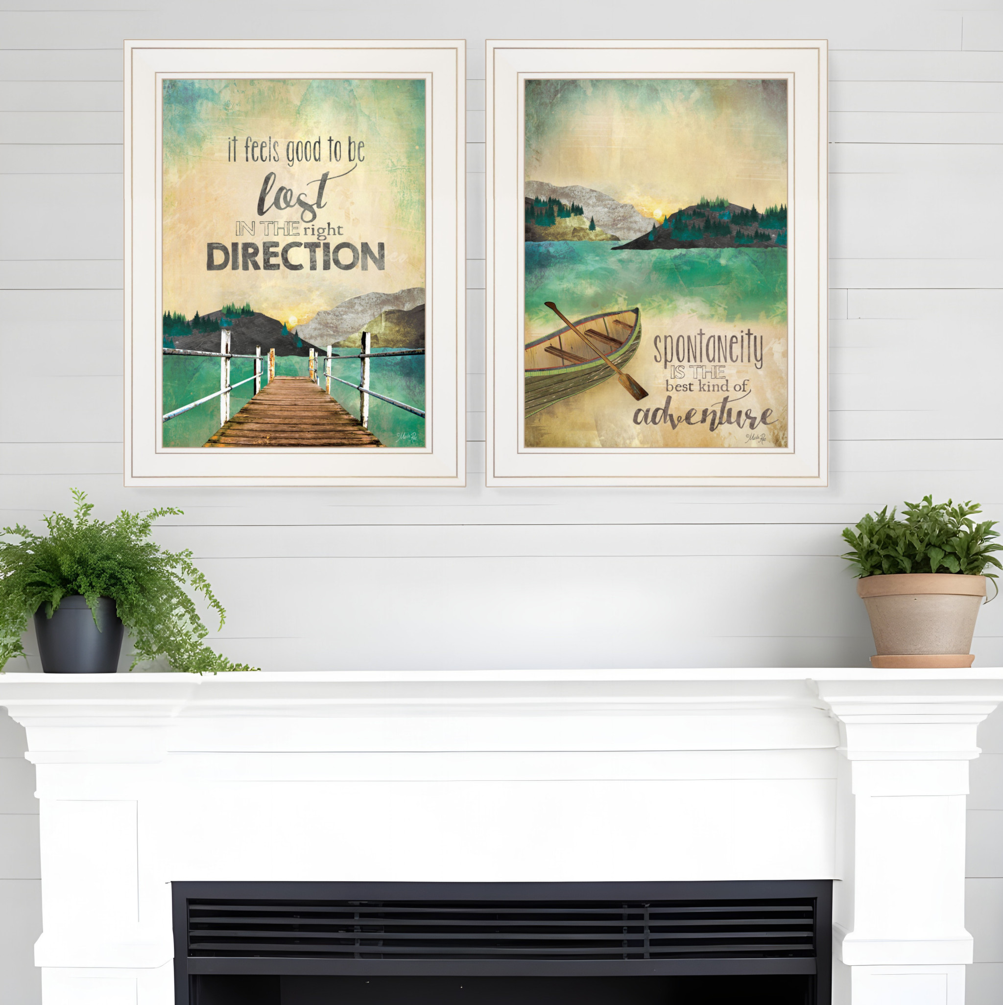 Unique and decorative, this set of two right direction or adventure 1 white framed print wall art will leave a lasting impression. This print is a visual artistic expression that allows you to decorate your space in style. Reproduced for you on paper, this hanging decorative accent will be a trendy and fashionable way to dress your walls. Hang on your wall to add some up to date fashion and decoration. Utilize this opportunity to create a focal point in the room with this fabulous wall decor option. 19-inch H x 15-inch W x 1-inch D