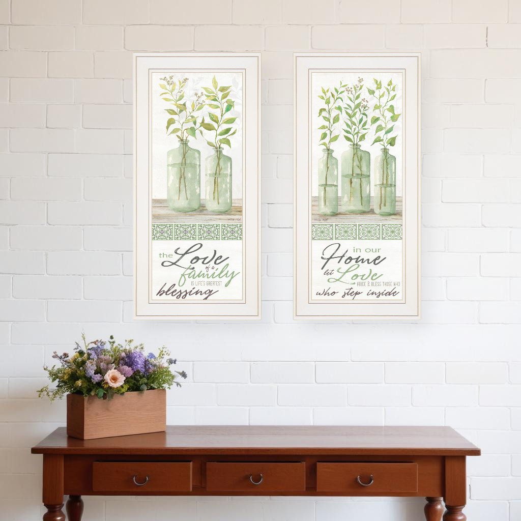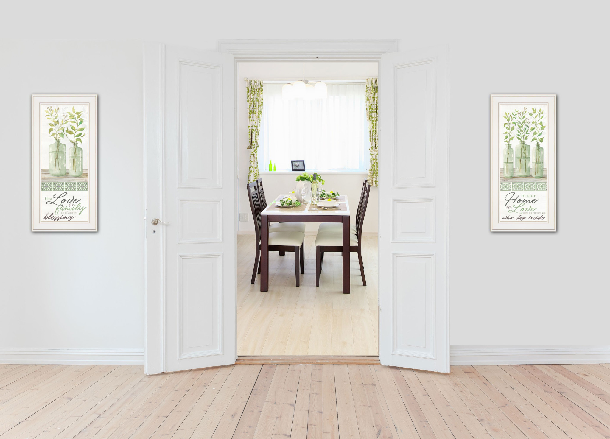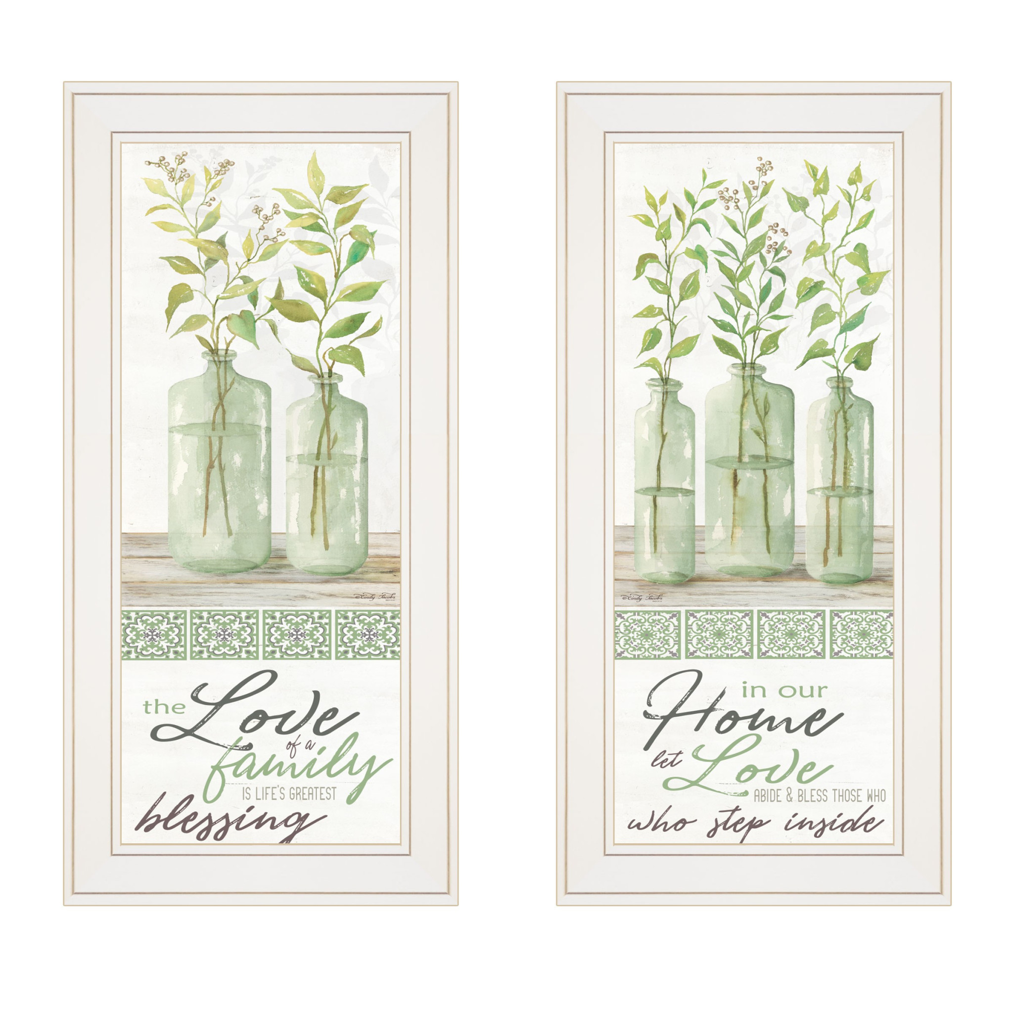 This set of two home and family white framed print wall art will add a beautiful decorative accent to your decor. This print is a visual artistic expression that allows you to decorate your space in style. Reproduced for you on paper, this hanging decorative accent will be a trendy and fashionable way to dress your walls. Hang on your wall to add some up to date fashion and decoration. Utilize this opportunity to create a focal point in the room with this fabulous wall decor option. 27-inch H x 11-inch W x 2-inch D