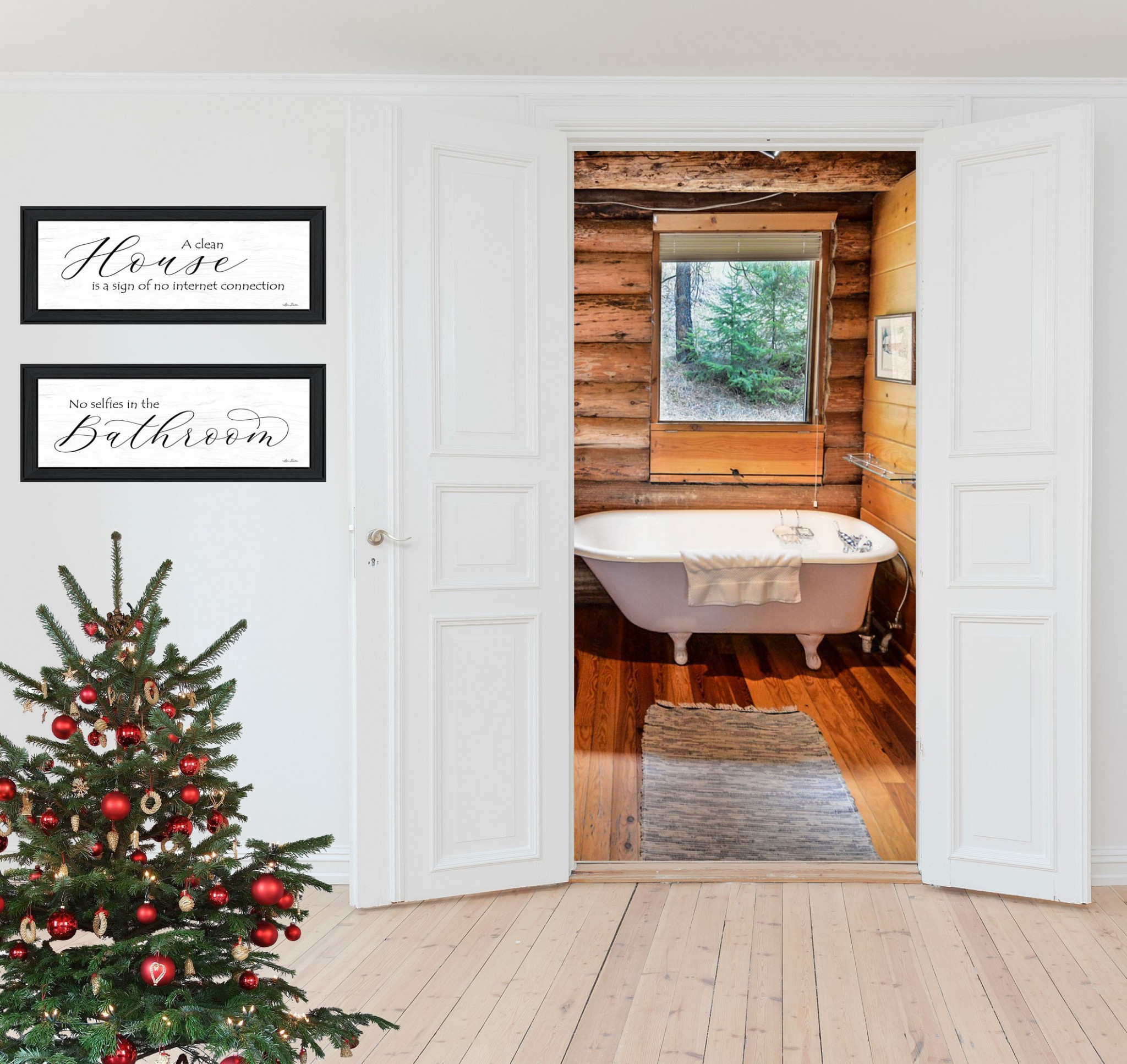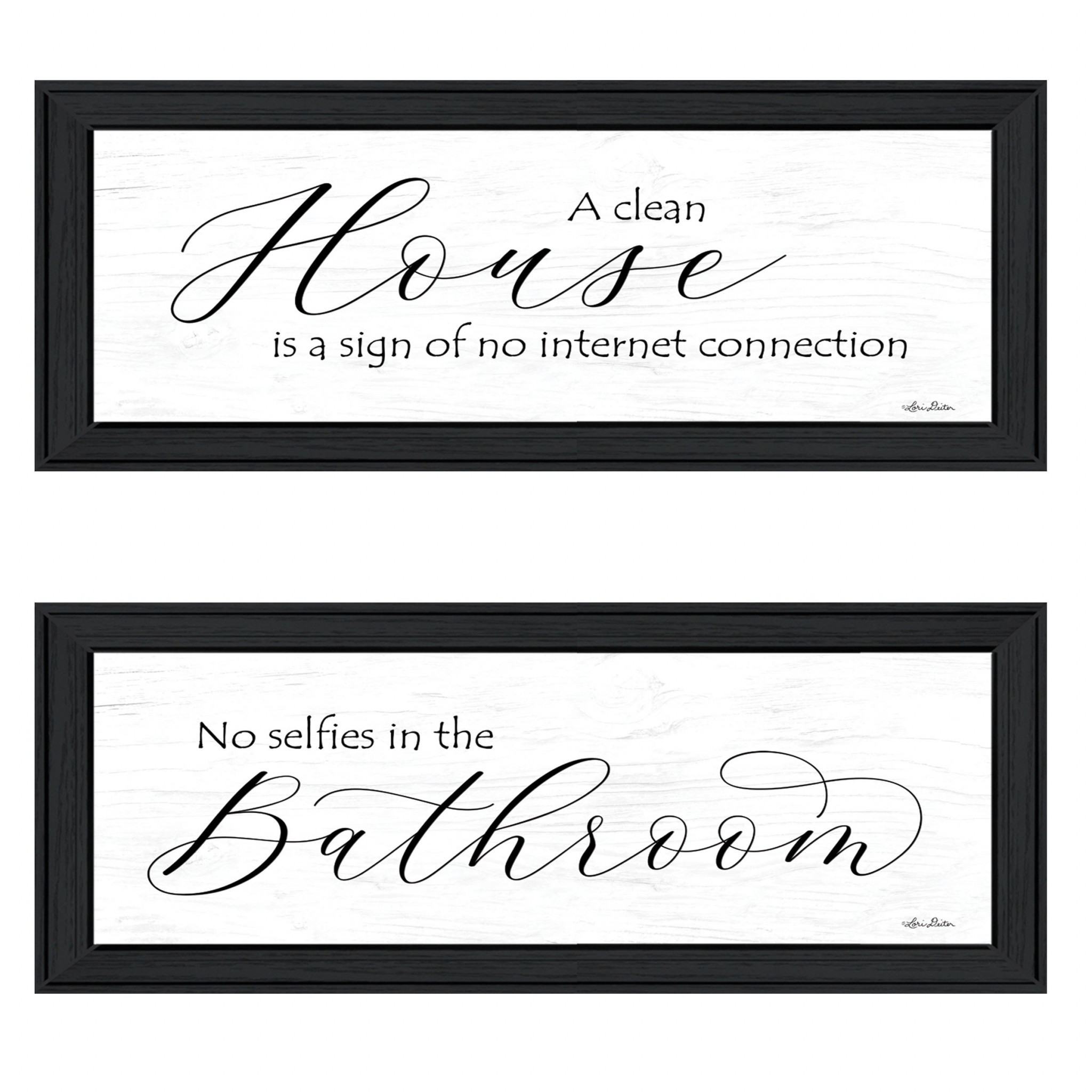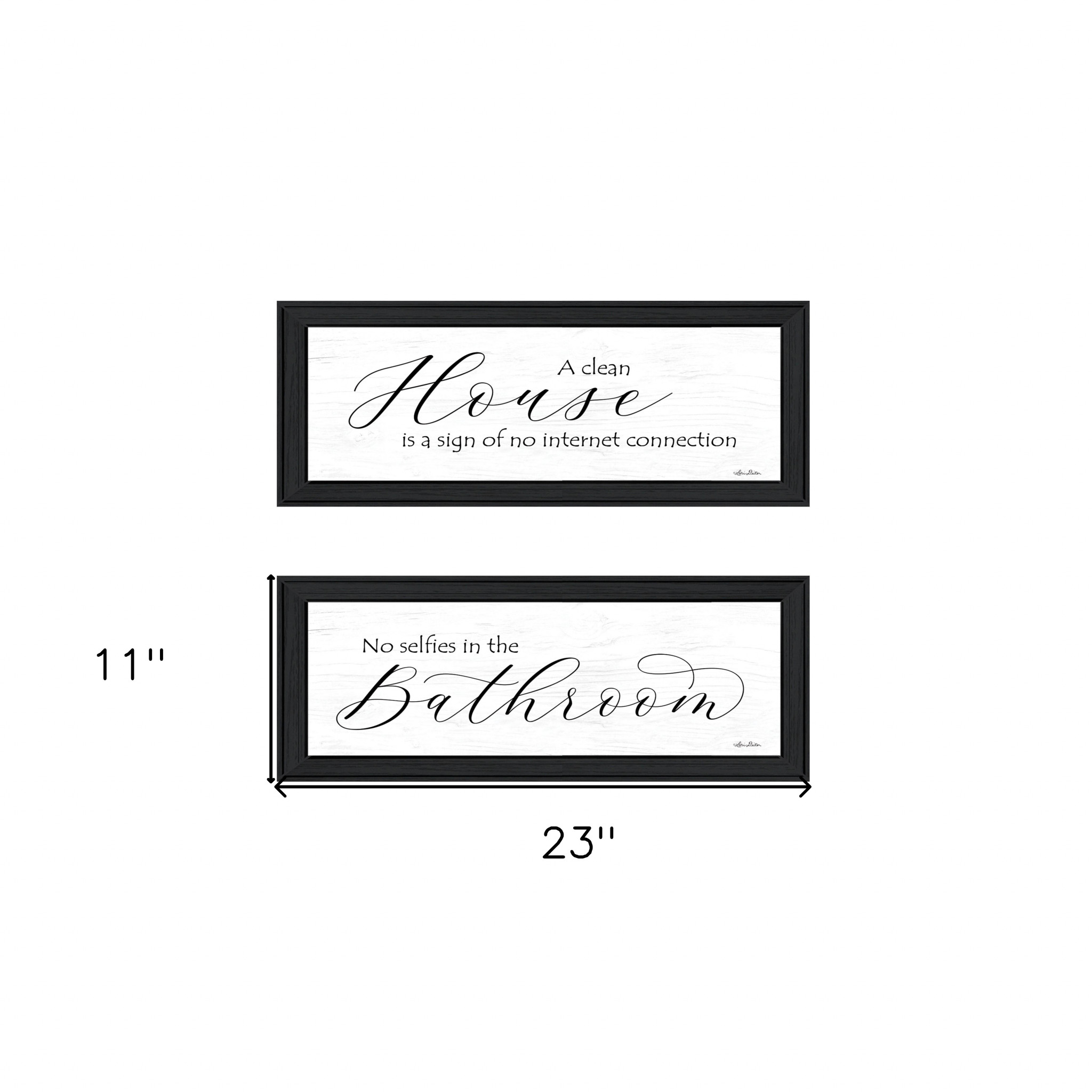 This set of two household humor 2 black framed print bathroom wall art will add a beautiful decorative accent to your decor. This print is a visual artistic expression that allows you to decorate your space in style. Reproduced for you on paper, this hanging decorative accent will be a trendy and fashionable way to dress your walls. Adding this hanging wall art to your space to make your room feel more finished and attractive. Utilize this opportunity to create a focal point in the room with this fabulous wall decor option. 11-inch H x 23-inch W x 1-inch D