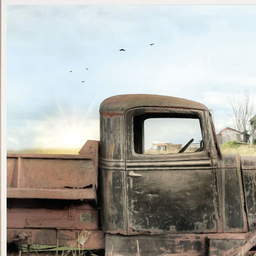Add an air of fashion to your room and rejuvenate the space with this set of two vintage farm trucks 1 white framed print wall art. This transportation inspired wall art features a farm truck icon and will bring a refreshing look and perspective to your walls. This print is a visual artistic expression that allows you to decorate your space in style. Reproduced for you on paper, this hanging decorative accent will be a trendy and fashionable way to dress your walls. Hang on your wall to add some up to date fashion and decoration. Utilize this opportunity to create a focal point in the room with this fabulous wall decor option. 15-inch H x 21-inch W x 1-inch D