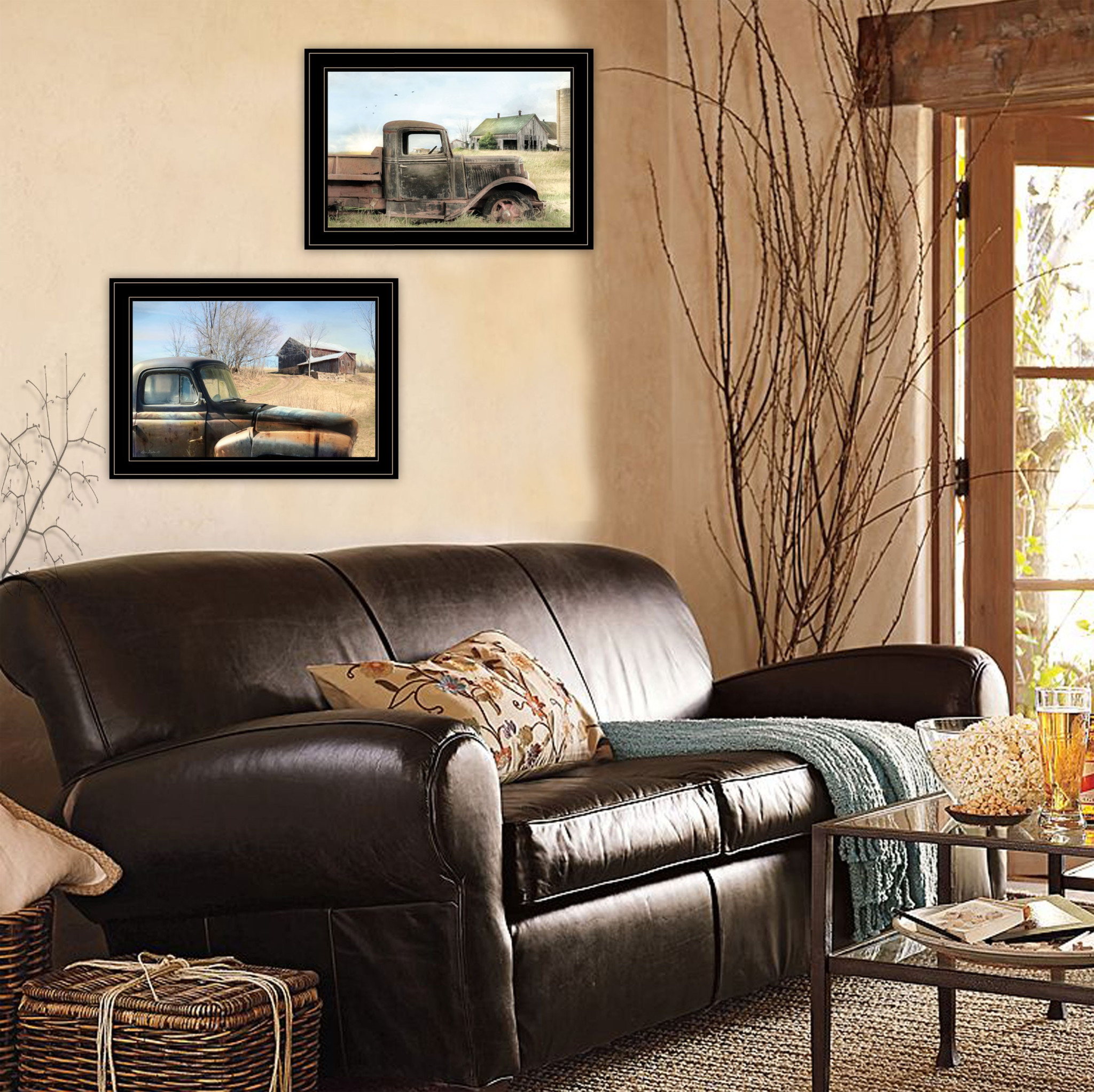 Add an air of fashion to your room and rejuvenate the space with this set of two vintage farm trucks 2 black framed print wall art. This transportation inspired wall art features a farm truck icon and will bring a refreshing look and perspective to your walls. This print is a visual artistic expression that allows you to decorate your space in style. Reproduced for you on paper, this hanging decorative accent will be a trendy and fashionable way to dress your walls. Hang on your wall to add some up to date fashion and decoration. Instantly liven up your space with this art that brings color and dimension to your walls. 15-inch H x 21-inch W x 1-inch D