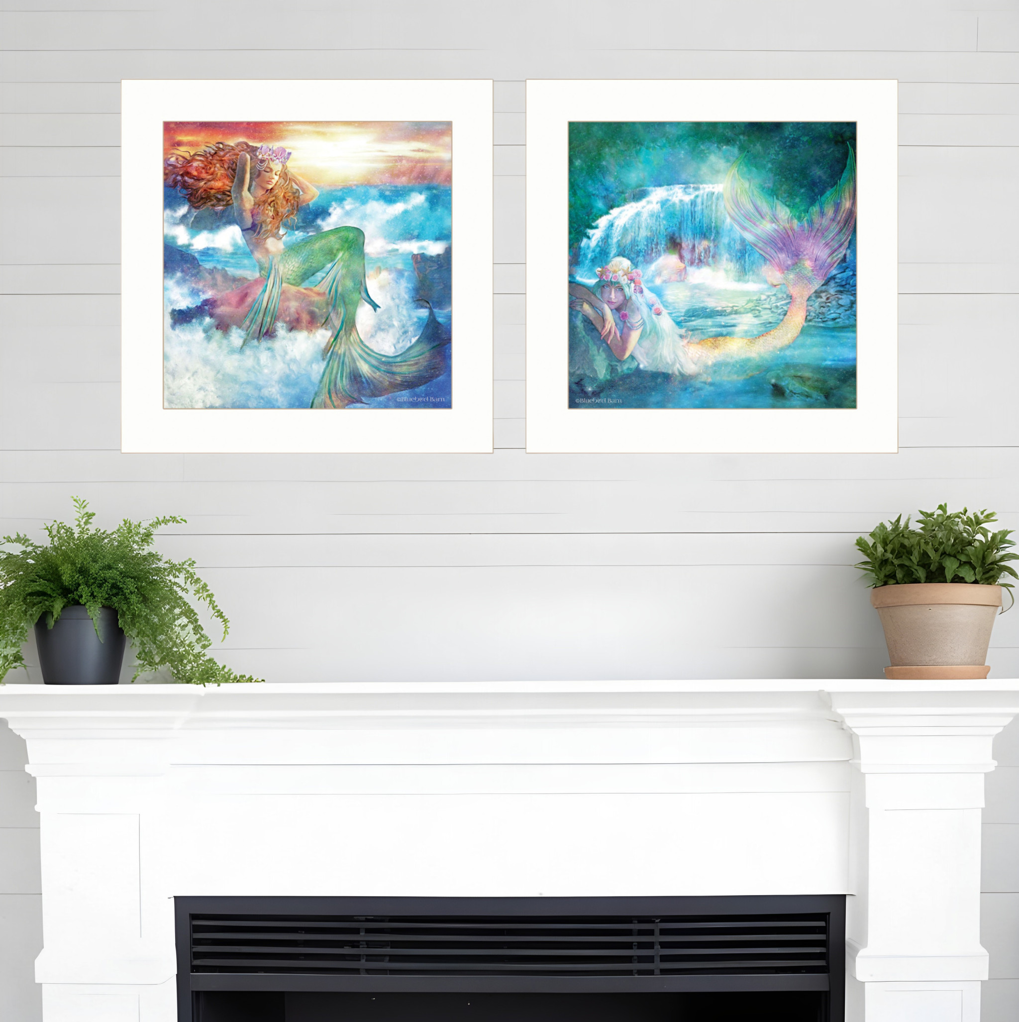 Add an air of fashion to your room and rejuvenate the space with this set of two mermaids 1 white framed print wall art. This print is a visual artistic expression that allows you to decorate your space in style. Reproduced for you on paper, this hanging decorative accent will be a trendy and fashionable way to dress your walls. Adding this hanging wall art to your space to make your room feel more finished and attractive. Instantly liven up your space with this art that brings color and dimension to your walls. 15-inch H x 15-inch W x 1-inch D