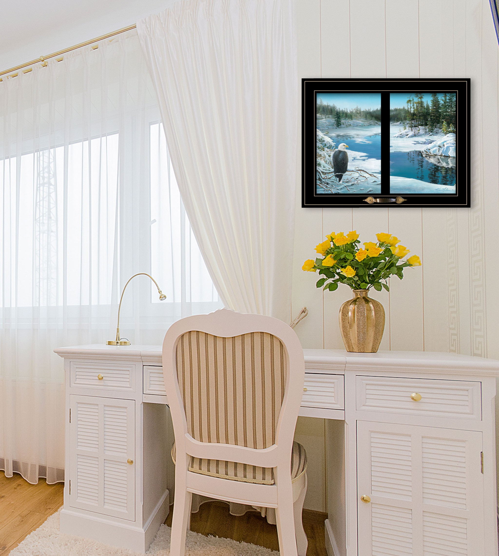 Eagle, Bald eagle, river, snow, fall,den, family room, livingroom, framed art, art, wall decor, decor, artwork, poster, print, mdf, framed decor, framed poster |