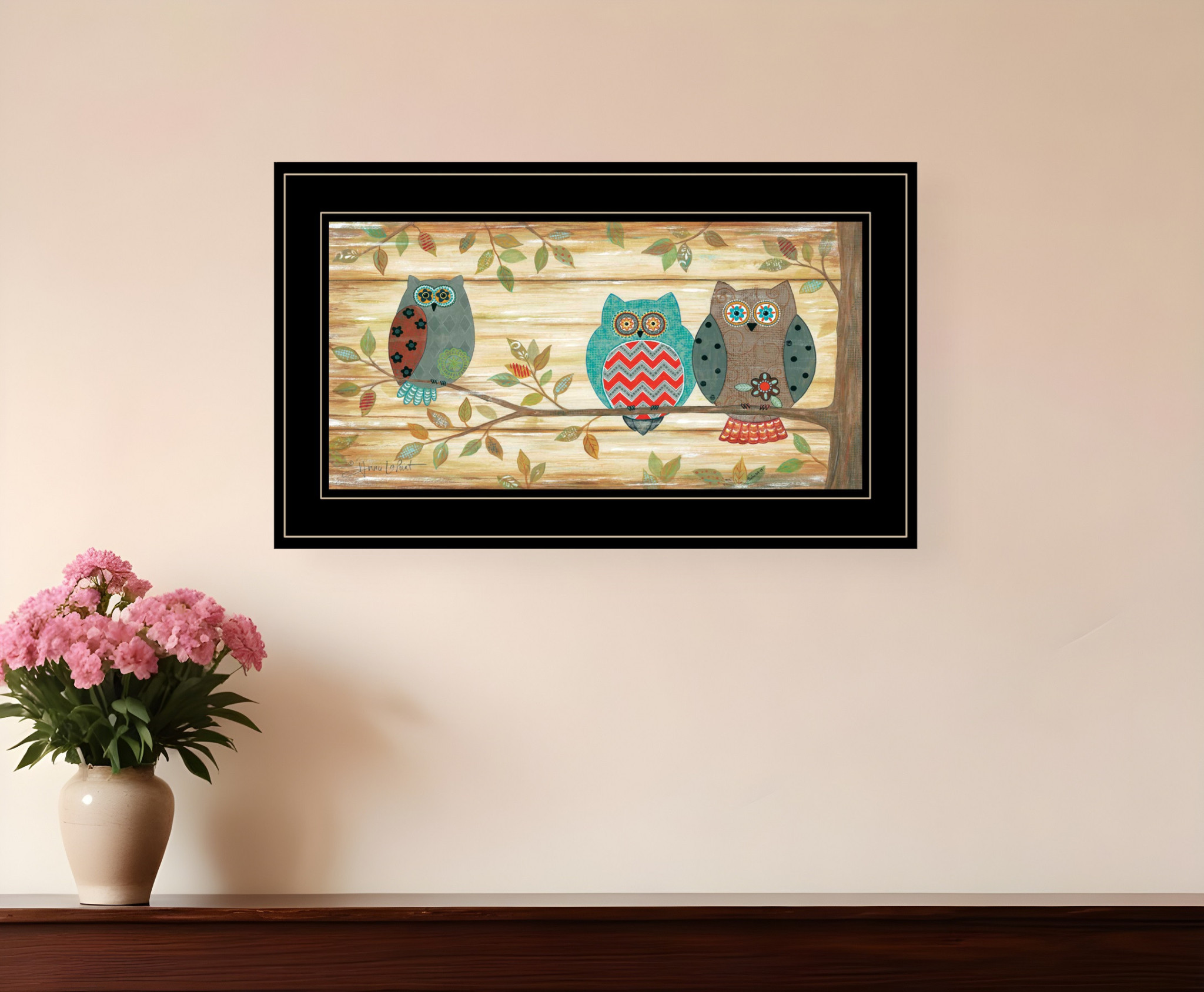 Unique and decorative, this three wise owls 4 black framed print wall art will leave a lasting impression. Add a sense of the woods, mountain or lodge lifestyle to your walls with this outdoorsy owl wall art. This print is a visual artistic expression that allows you to decorate your space in style. Reproduced for you on paper, this hanging decorative accent will be a trendy and fashionable way to dress your walls. Adding this hanging wall art to your space to make your room feel more finished and attractive. Instantly liven up your space with this art that brings color and dimension to your walls. 12-inch H x 21-inch W x 1-inch D