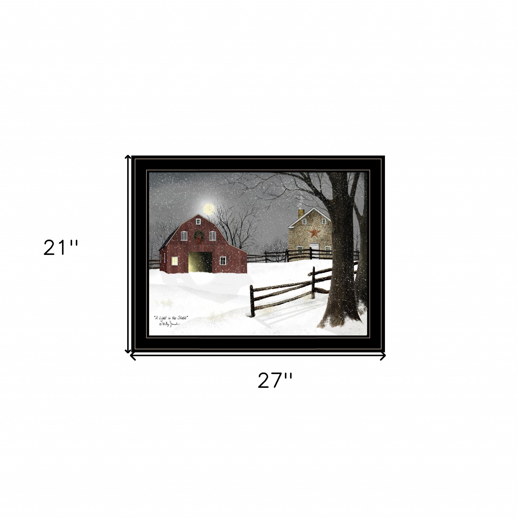 This light in the stable 7 black framed print wall art will add a beautiful decorative accent to your decor. This print is a visual artistic expression that allows you to decorate your space in style. Reproduced for you on paper, this hanging decorative accent will be a trendy and fashionable way to dress your walls. Adding this hanging wall art to your space to make your room feel more finished and attractive. Utilize this opportunity to create a focal point in the room with this fabulous wall decor option. 21-inch H x 27-inch W x 1-inch D