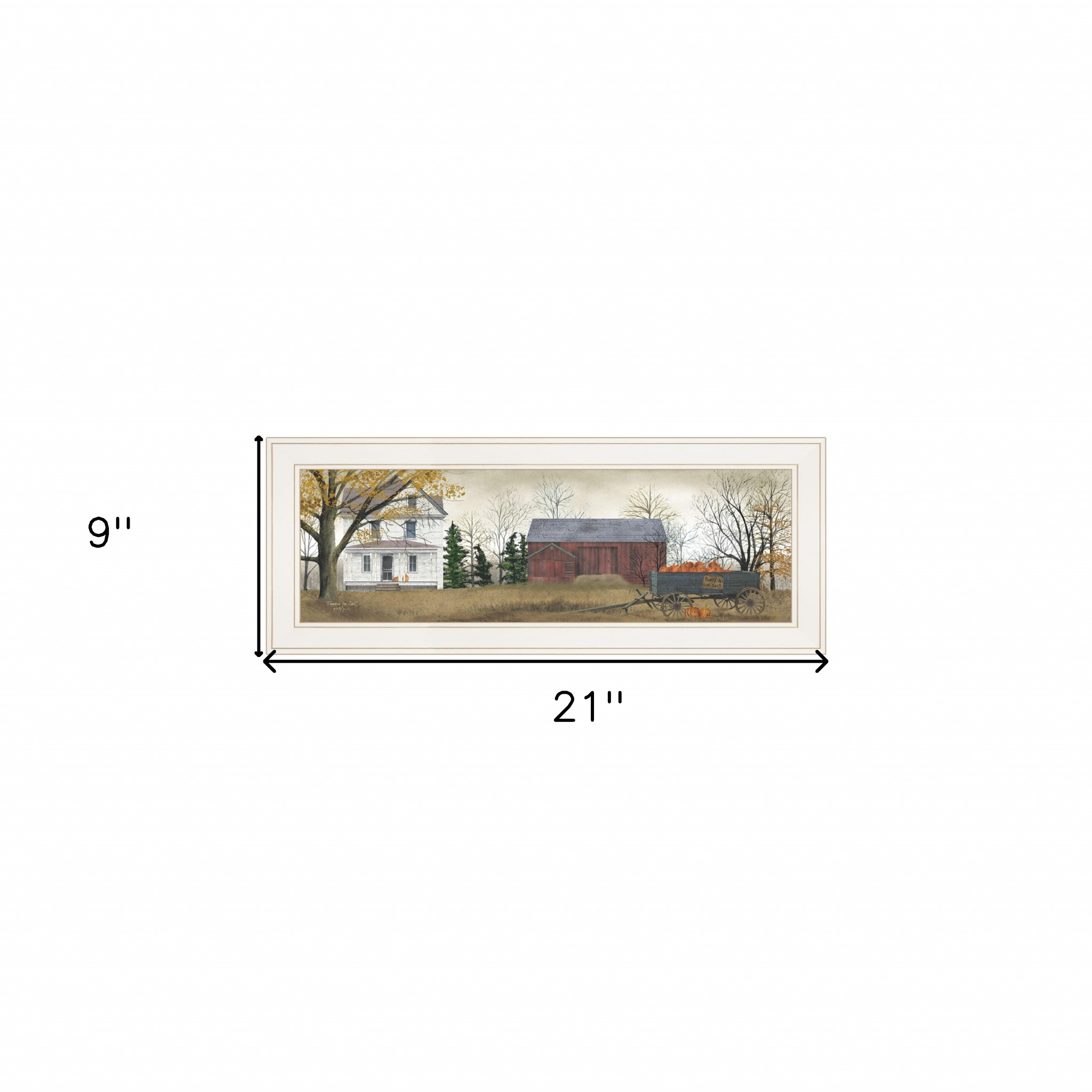 Add an air of fashion to your room and rejuvenate the space with this pumpkins for sale 2 white framed print wall art. This print is a visual artistic expression that allows you to decorate your space in style. Reproduced for you on paper, this hanging decorative accent will be a trendy and fashionable way to dress your walls. Adding this hanging wall art to your space to make your room feel more finished and attractive. Instantly liven up your space with this art that brings color and dimension to your walls. 9-inch H x 21-inch W x 1-inch D