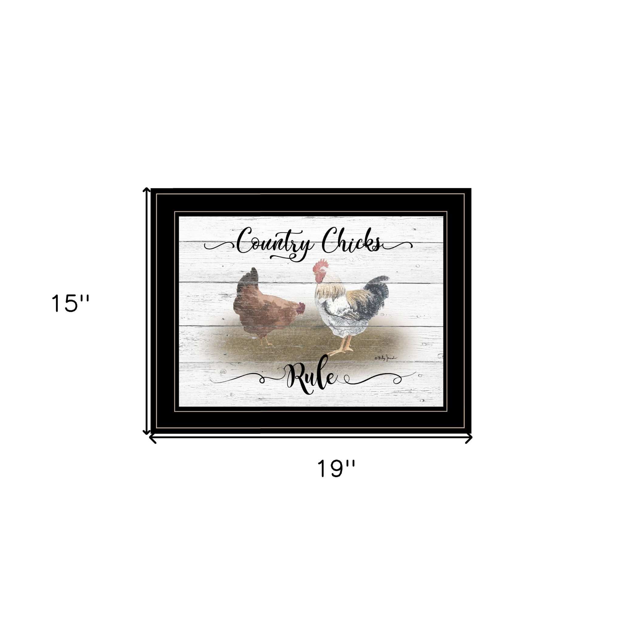 The country chicks rule 3 black framed print wall art is the perfect decorative accessory for your home. This print is a visual artistic expression that allows you to decorate your space in style. Reproduced for you on paper, this hanging decorative accent will be a trendy and fashionable way to dress your walls. Adding this hanging wall art to your space to make your room feel more finished and attractive. Instantly liven up your space with this art that brings color and dimension to your walls. 15-inch H x 19-inch W x 1-inch D
