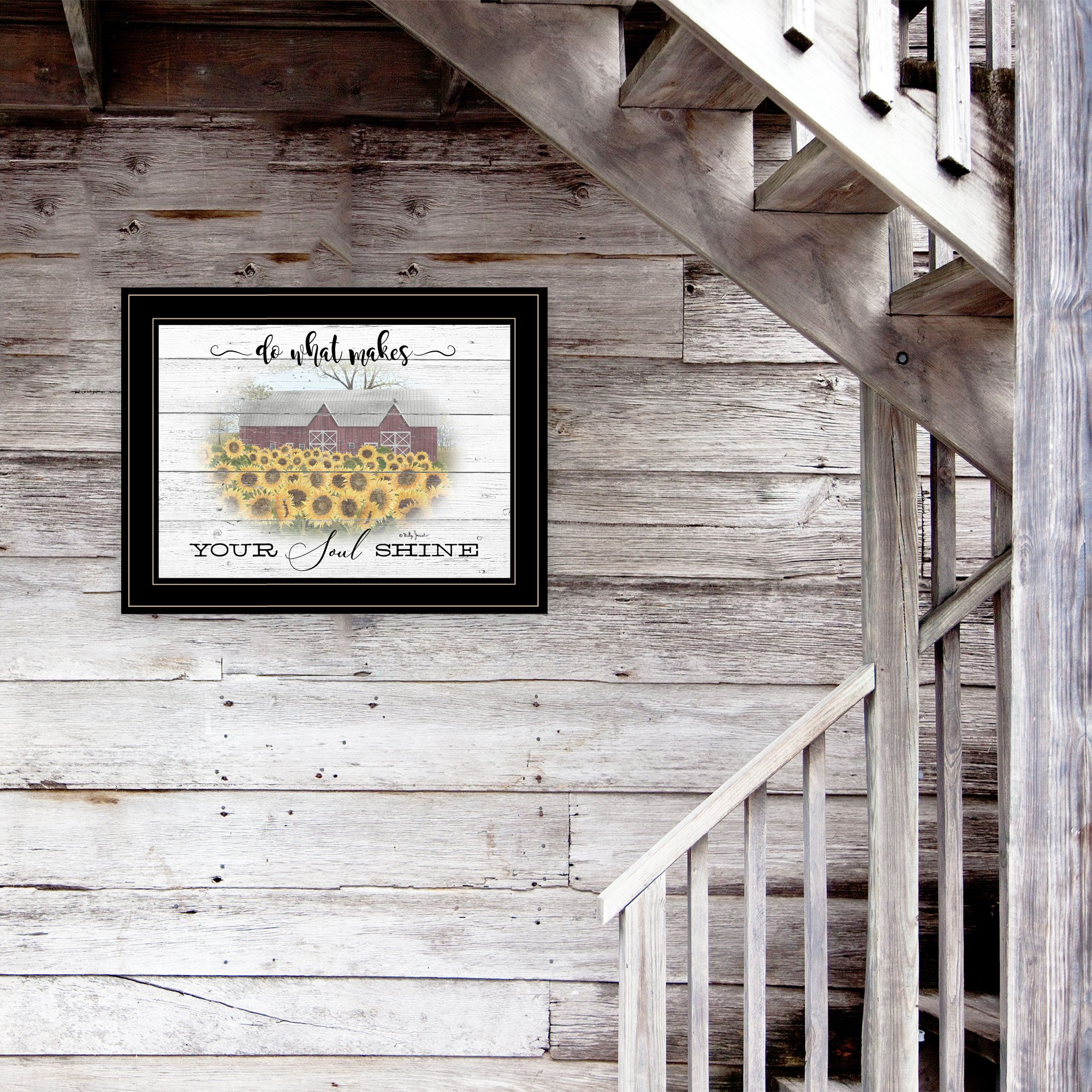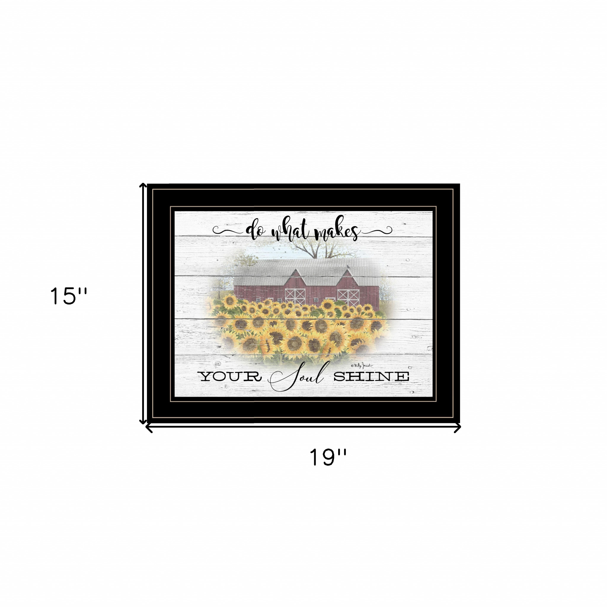Bring some sizzle to your space with this eye-catching do what makes your soul shine 2 black framed print wall art. This print is a visual artistic expression that allows you to decorate your space in style. Reproduced for you on paper, this hanging decorative accent will be a trendy and fashionable way to dress your walls. Hang on your wall to add some up to date fashion and decoration. Instantly liven up your space with this art that brings color and dimension to your walls. 15-inch H x 19-inch W x 1-inch D