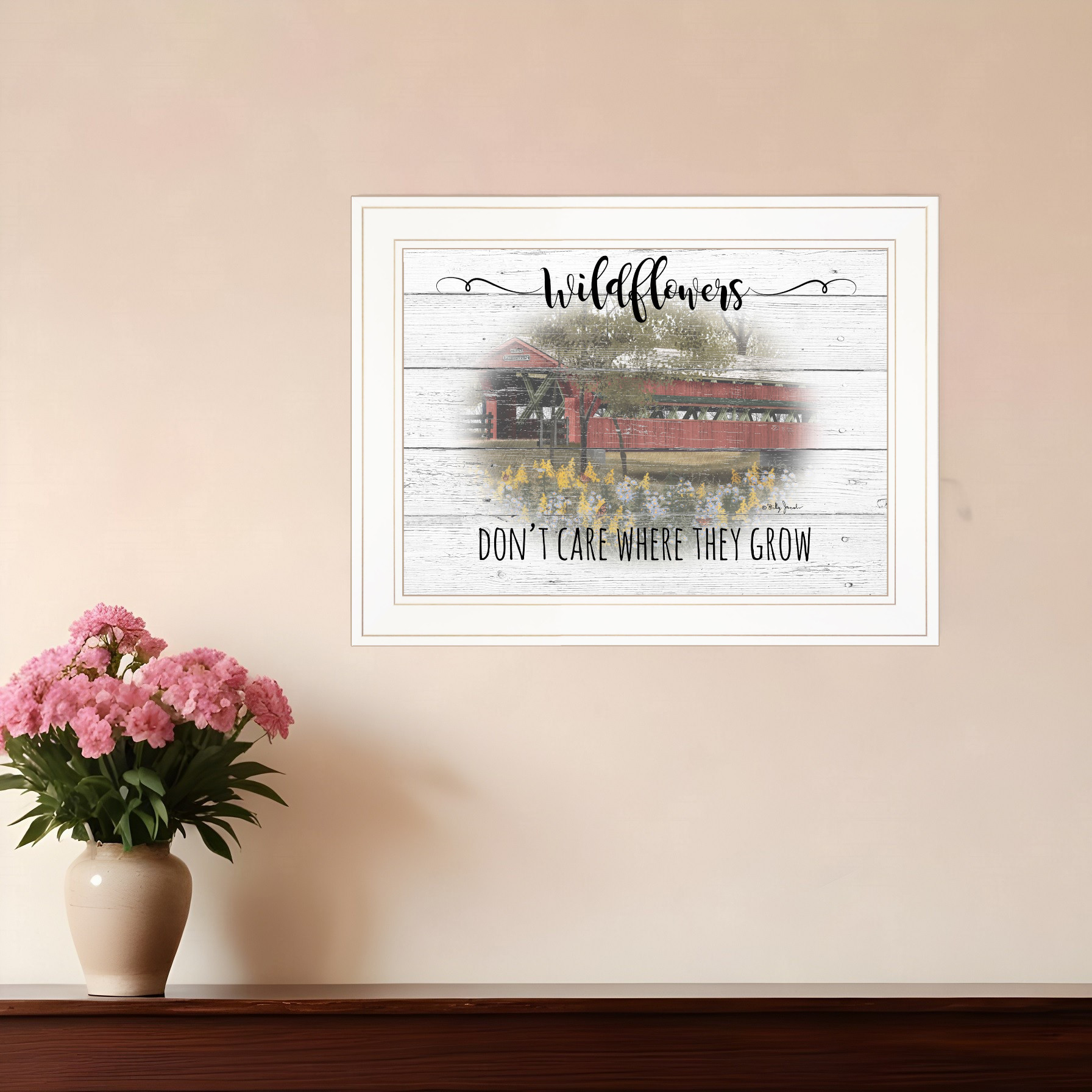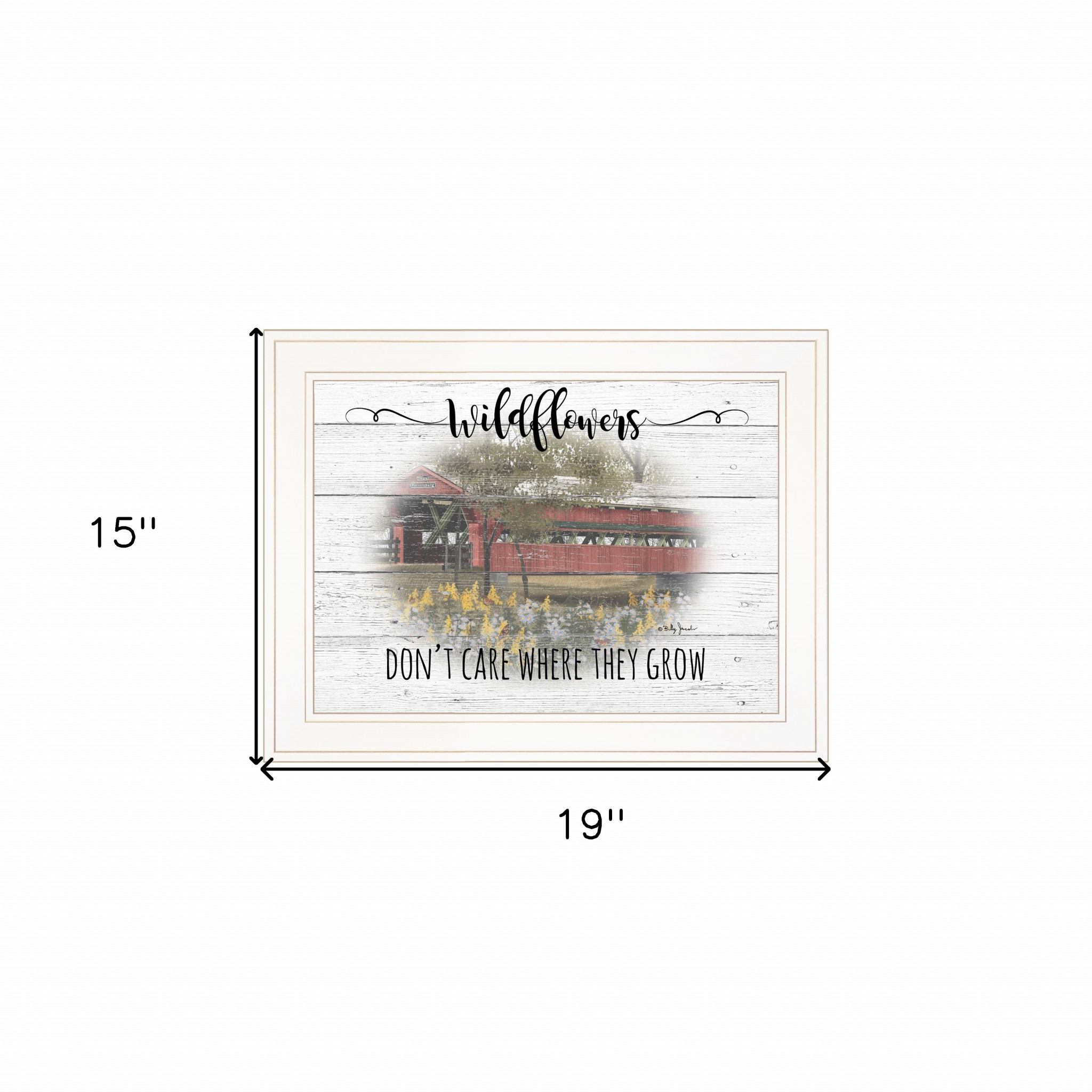 The wildflowers covered bridge white framed print wall art is the perfect decorative accessory for your home. This print is a visual artistic expression that allows you to decorate your space in style. Reproduced for you on paper, this hanging decorative accent will be a trendy and fashionable way to dress your walls. Hang on your wall to add some up to date fashion and decoration. Utilize this opportunity to create a focal point in the room with this fabulous wall decor option. 15 inches H x 19 inches W x 1 inches D