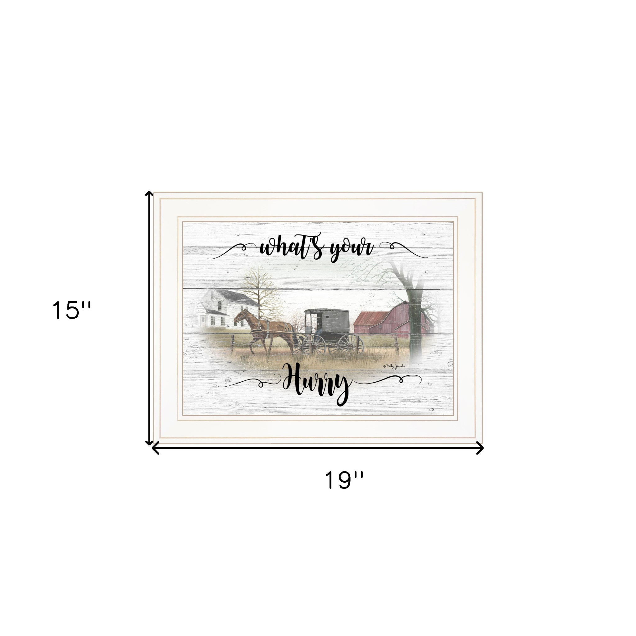 Bring some sizzle to your space with this eye-catching whats your hurry 1 white framed print wall art. Bring a little bit of the farm indoors when you hang this horse artwork. This print is a visual artistic expression that allows you to decorate your space in style. Reproduced for you on paper, this hanging decorative accent will be a trendy and fashionable way to dress your walls. Hang on your wall to add some up to date fashion and decoration. Utilize this opportunity to create a focal point in the room with this fabulous wall decor option. 15-inch H x 19-inch W x 1-inch D