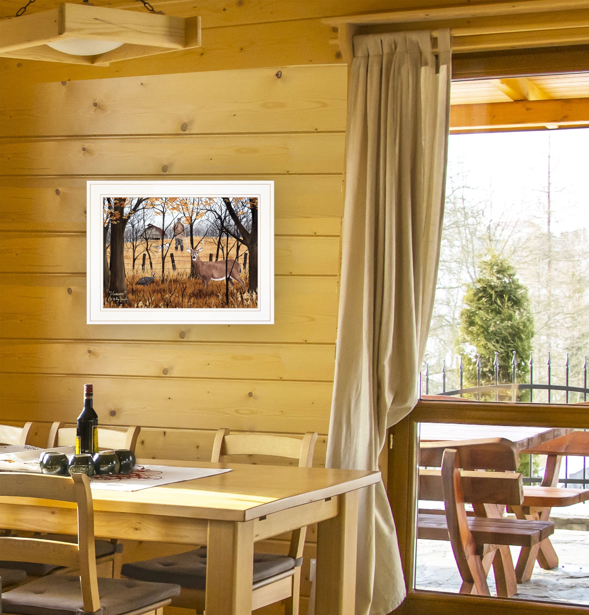 This unaware 1 white framed print wall art will add a beautiful decorative accent to your decor. Add a sense of the woods, mountain or lodge lifestyle to your walls with this outdoorsy deer wall art. This print is a visual artistic expression that allows you to decorate your space in style. Reproduced for you on paper, this hanging decorative accent will be a trendy and fashionable way to dress your walls. Adding this hanging wall art to your space to make your room feel more finished and attractive. Utilize this opportunity to create a focal point in the room with this fabulous wall decor option. 15-inch H x 19-inch W x 1-inch D