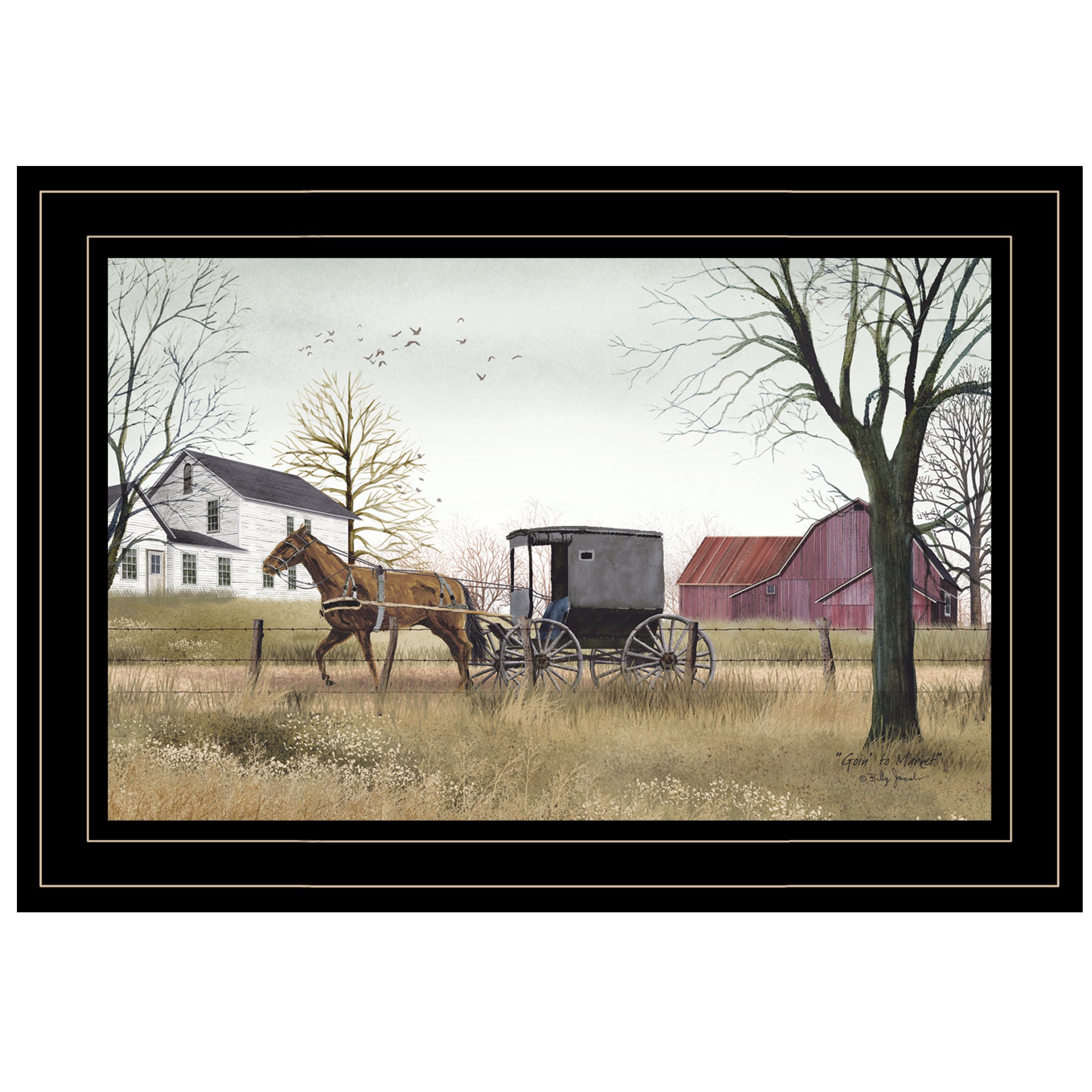 Billy Jacobs horse art, animal art, framed Amish, Amish buggy, Amish art, fall, autumn village, farm art, countryside art, American countryside, autumn village houses |