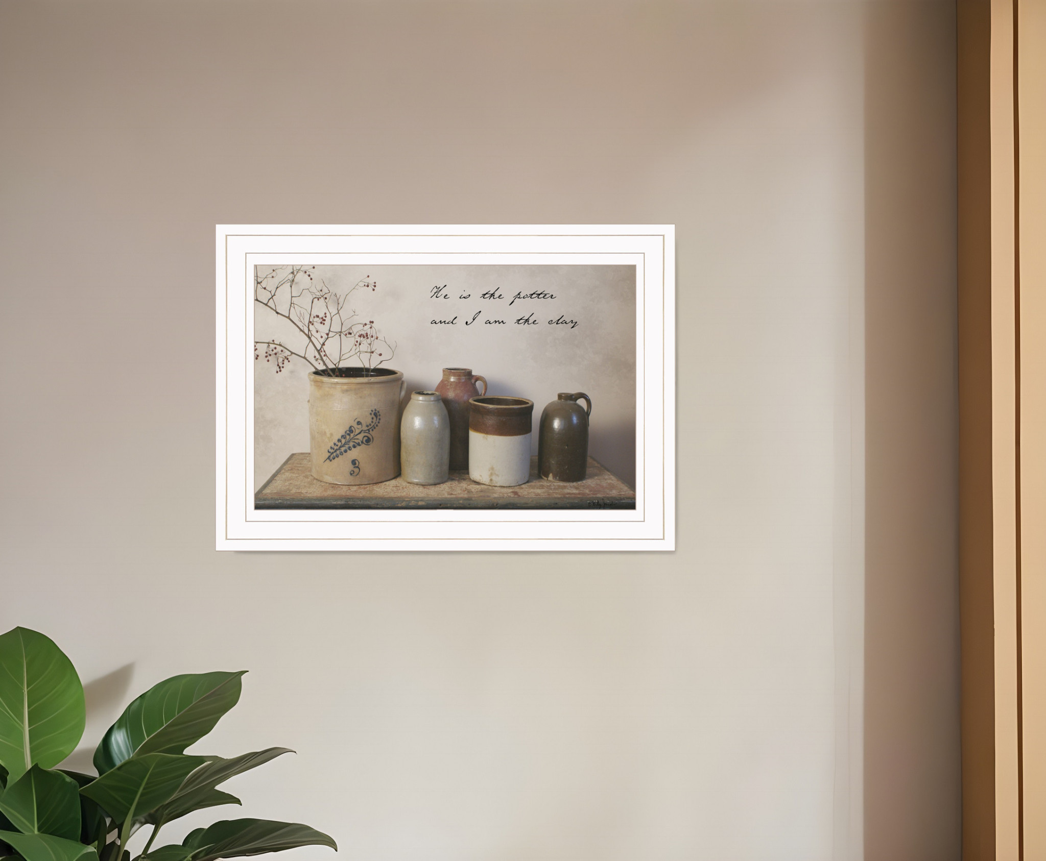 Bring some sizzle to your space with this eye-catching he is the potter 1 white framed print wall art. This print is a visual artistic expression that allows you to decorate your space in style. Reproduced for you on paper, this hanging decorative accent will be a trendy and fashionable way to dress your walls. Adding this hanging wall art to your space to make your room feel more finished and attractive. Instantly liven up your space with this art that brings color and dimension to your walls. 11-inch H x 15-inch W x 1-inch D