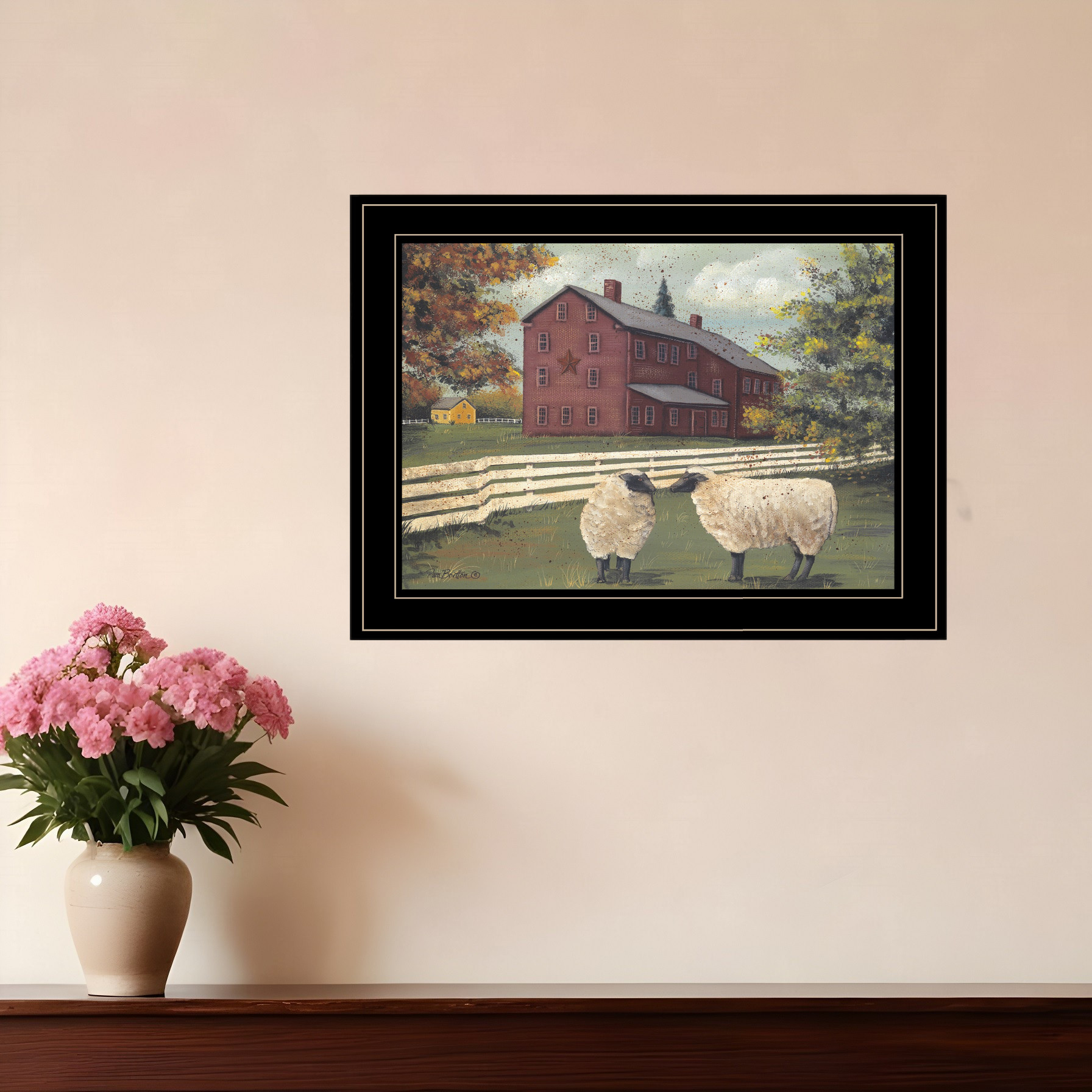 The hancock sheep 3 black framed print wall art is the perfect decorative accessory for your home. This print is a visual artistic expression that allows you to decorate your space in style. Reproduced for you on paper, this hanging decorative accent will be a trendy and fashionable way to dress your walls. Hang on your wall to add some up to date fashion and decoration. Utilize this opportunity to create a focal point in the room with this fabulous wall decor option. 15-inch H x 19-inch W x 1-inch D