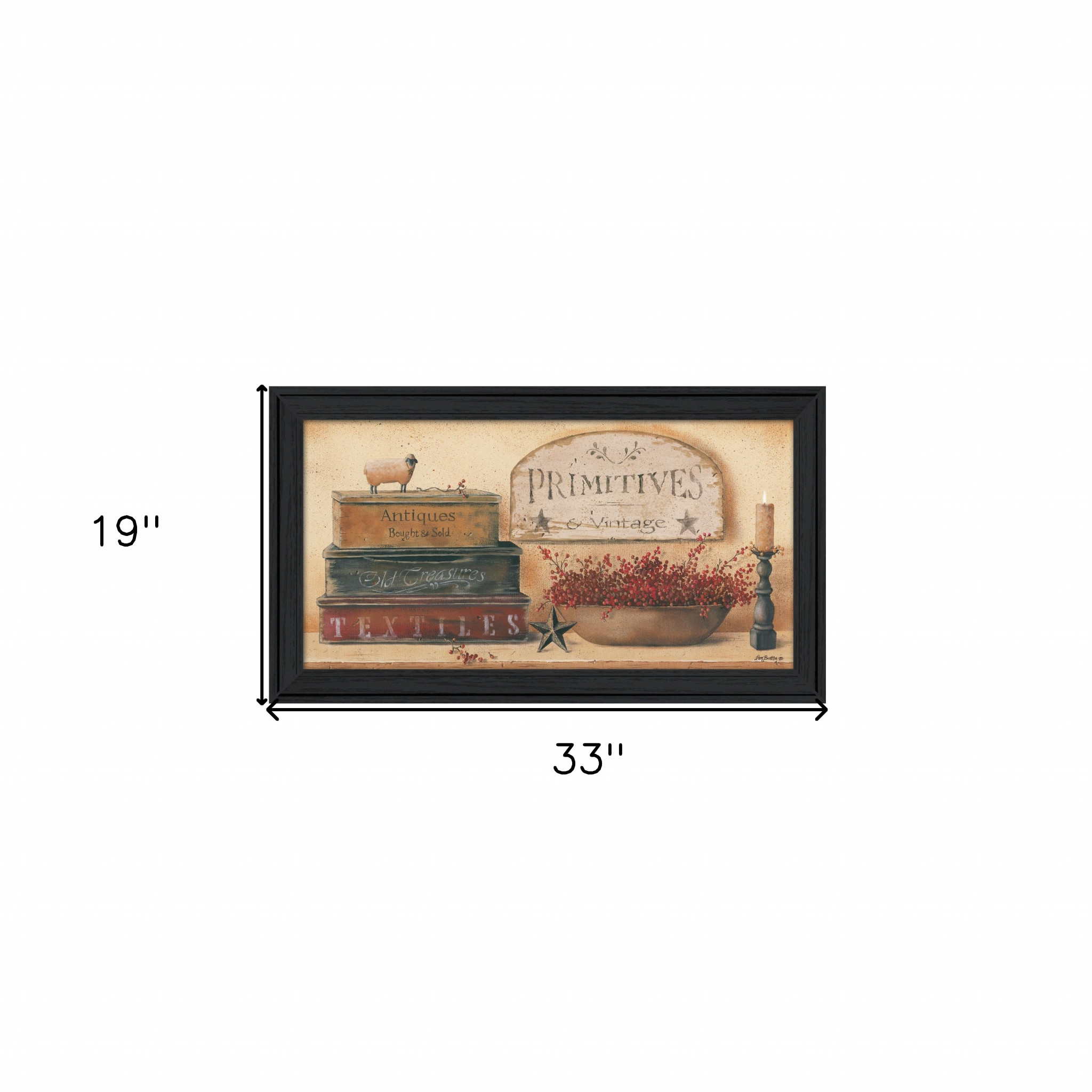 This primitives and vintage 1 black framed print wall art will add a beautiful decorative accent to your decor. This print is a visual artistic expression that allows you to decorate your space in style. Reproduced for you on paper, this hanging decorative accent will be a trendy and fashionable way to dress your walls. Hang on your wall to add some up to date fashion and decoration. Utilize this opportunity to create a focal point in the room with this fabulous wall decor option. 19-inch H x 33-inch W x 1-inch D