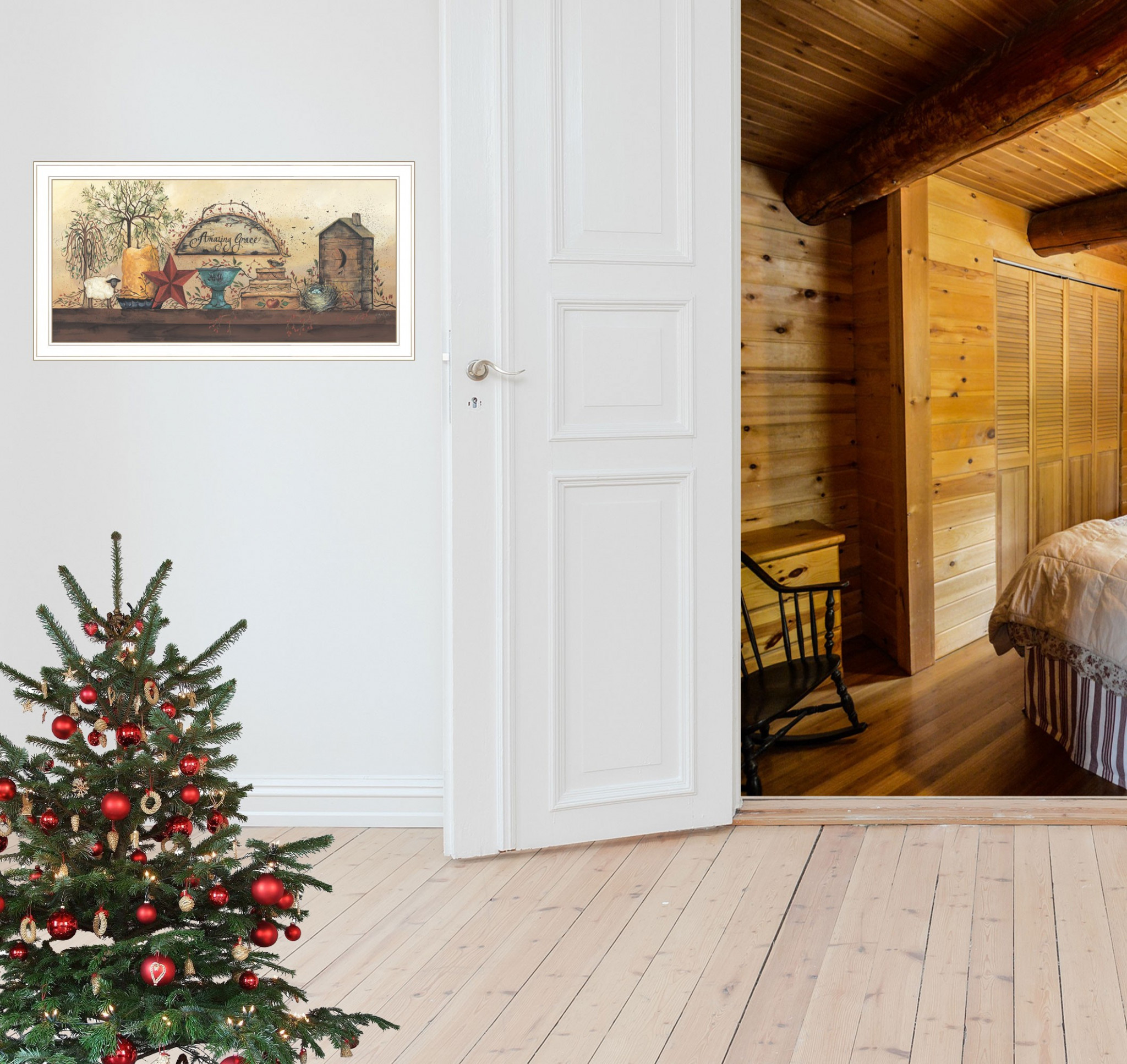 This amazing grace shelf 1 white framed print wall art will add a beautiful decorative accent to your decor. This print is a visual artistic expression that allows you to decorate your space in style. Reproduced for you on paper, this hanging decorative accent will be a trendy and fashionable way to dress your walls. Adding this hanging wall art to your space to make your room feel more finished and attractive. Instantly liven up your space with this art that brings color and dimension to your walls. 19-inch H x 37-inch W x 1-inch D