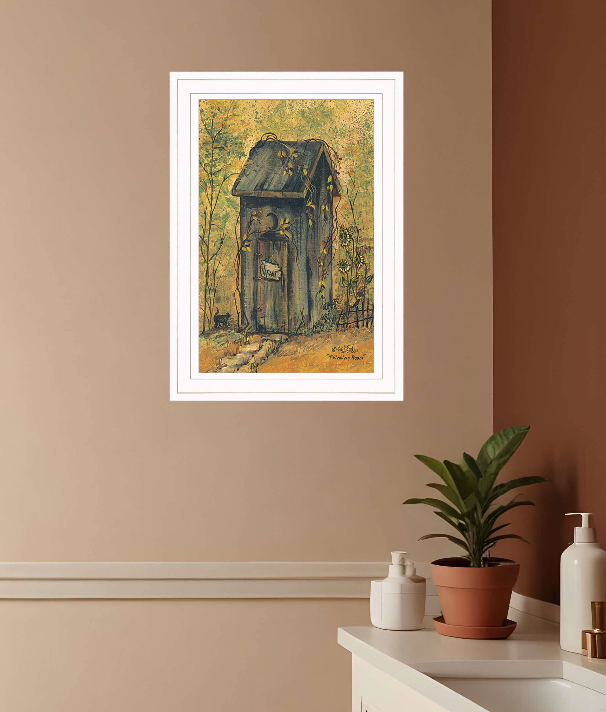 Gail Eads rustic art, primitive art, bathroom decor, toilet sign, bathroom sign, countryside art, country charm decor |