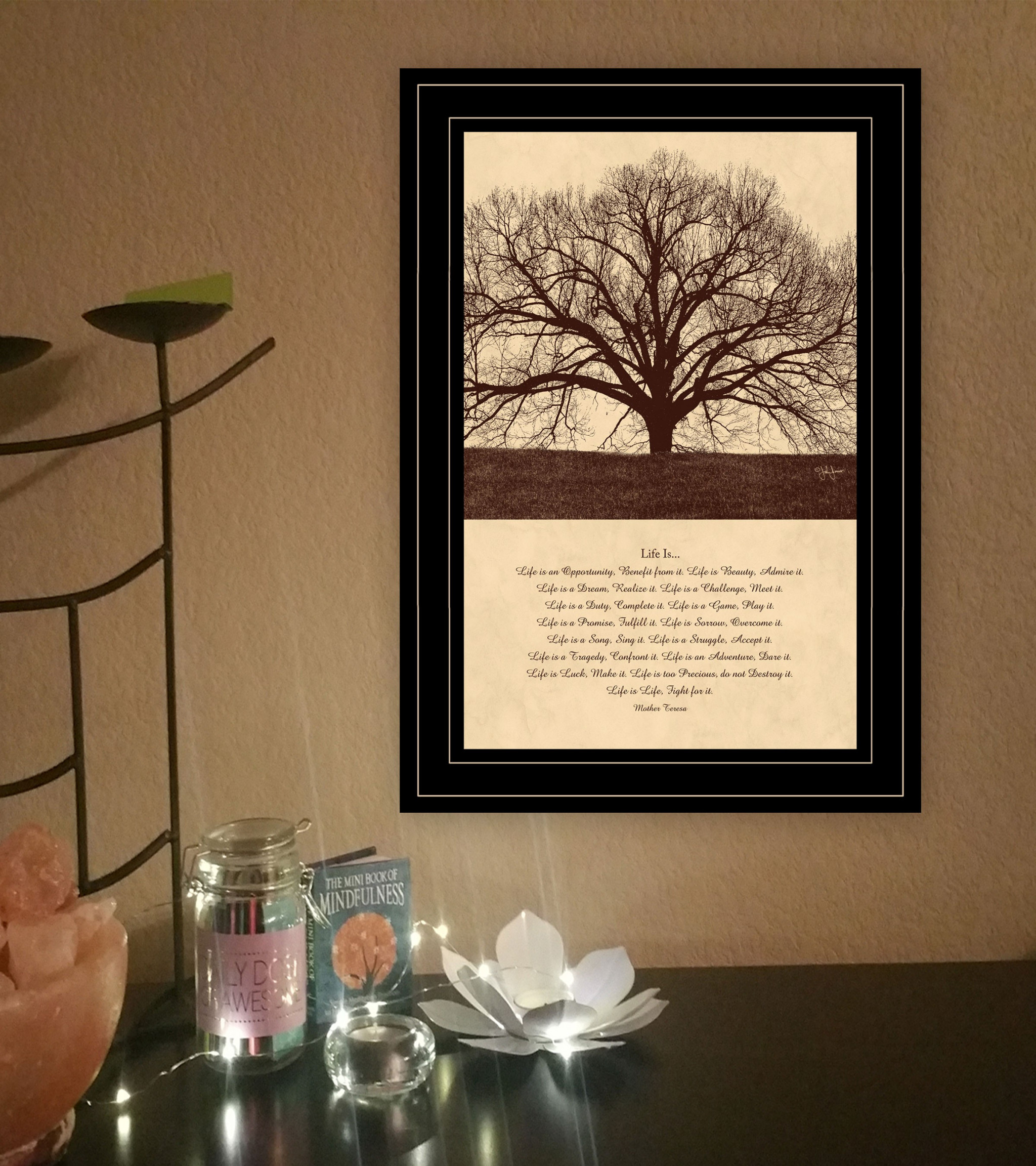 This life is 7 black framed print wall art will add a beautiful decorative accent to your decor. This print is a visual artistic expression that allows you to decorate your space in style. Reproduced for you on paper, this hanging decorative accent will be a trendy and fashionable way to dress your walls. Adding this hanging wall art to your space to make your room feel more finished and attractive. Utilize this opportunity to create a focal point in the room with this fabulous wall decor option. 11-inch H x 15-inch W x 1-inch D