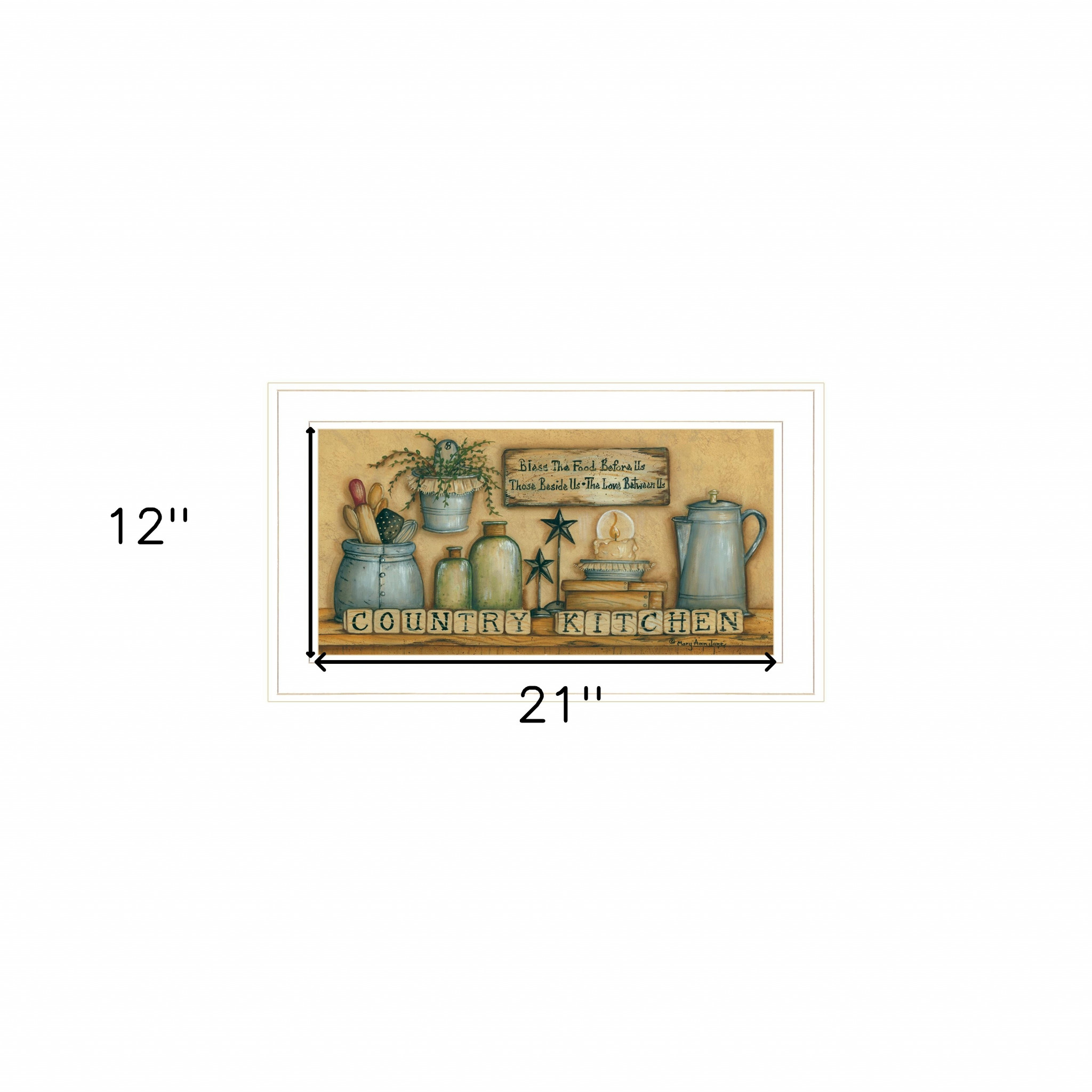 The country kitchen 5 white framed print kitchen wall art is the perfect decorative accessory for your home. This print is a visual artistic expression that allows you to decorate your space in style. Reproduced for you on paper, this hanging decorative accent will be a trendy and fashionable way to dress your walls. Adding this hanging wall art to your space to make your room feel more finished and attractive. Instantly liven up your space with this art that brings color and dimension to your walls. 12-inch H x 21-inch W x 1-inch D