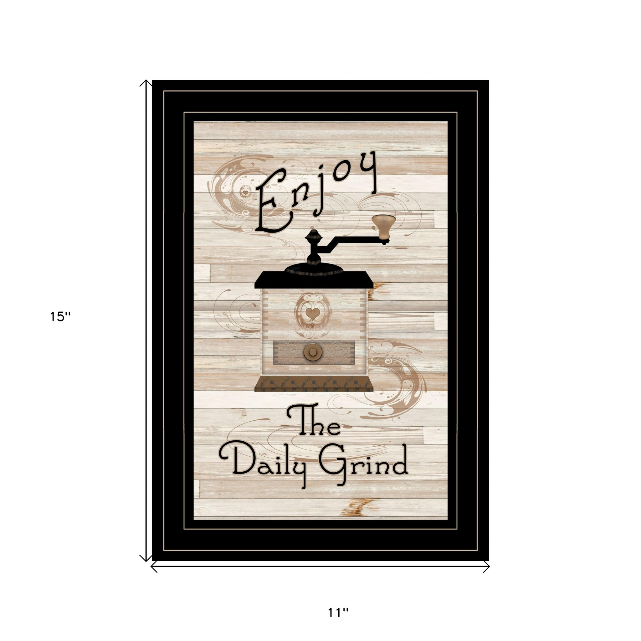 Bring some sizzle to your space with this eye-catching enjoy the daily grind 2 black framed print kitchen wall art. This print is a visual artistic expression that allows you to decorate your space in style. Reproduced for you on paper, this hanging decorative accent will be a trendy and fashionable way to dress your walls. Adding this hanging wall art to your space to make your room feel more finished and attractive. Utilize this opportunity to create a focal point in the room with this fabulous wall decor option. 15-inch H x 11-inch W x 1-inch D