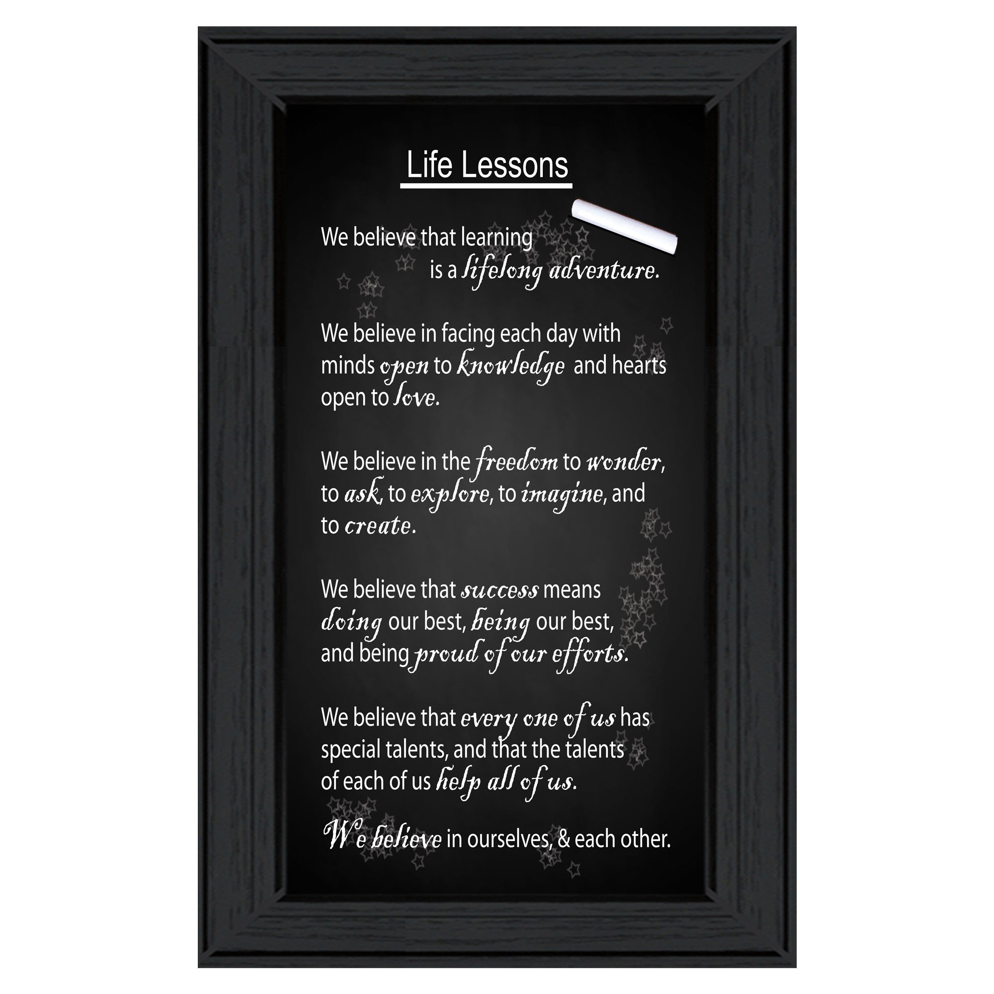 Trendy Deco Life Lessons, learning, adventure, believe, knowledge, hearts, minds,freedom, wonder, ask, explore, imagine, create, proud, talents, special talents, ourselves, |